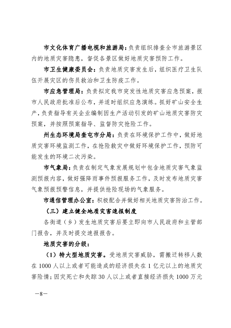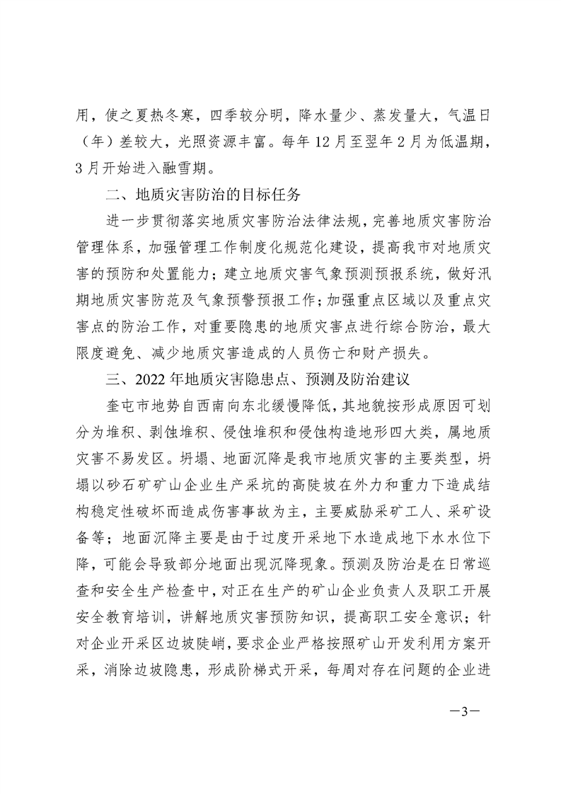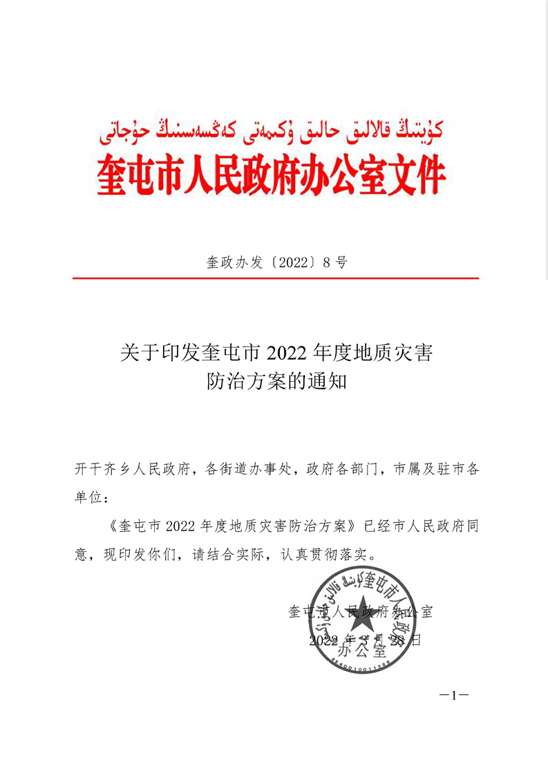 关于印发奎屯市2022年度地质灾害防治方案的通知 奎政办发〔2022〕8号