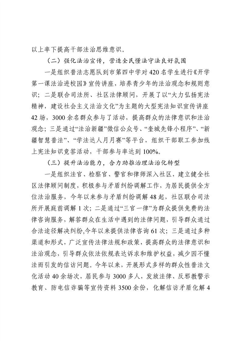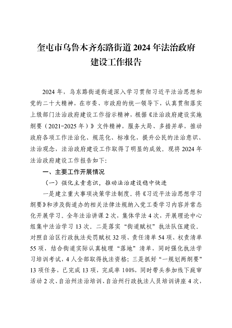 奎屯市乌鲁木齐东路街道2024年法治政府建设工作报告