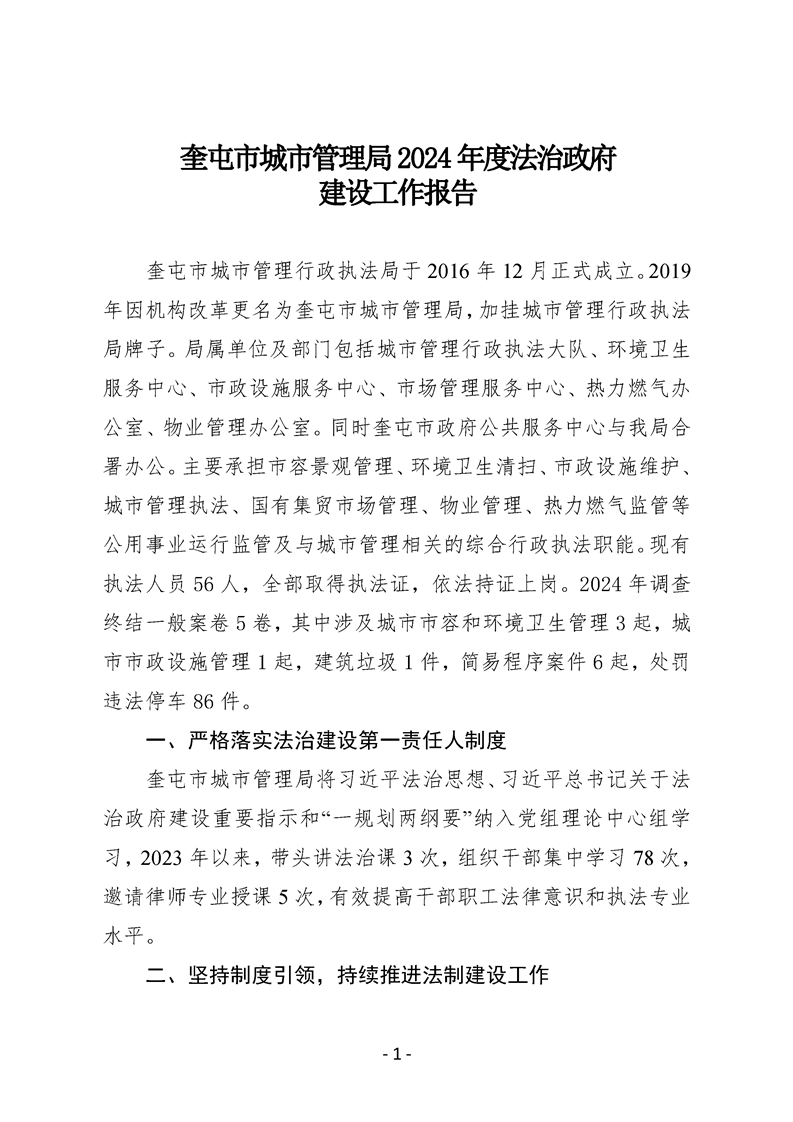 奎屯市城市管理局2024年度法治政府建设工作报告