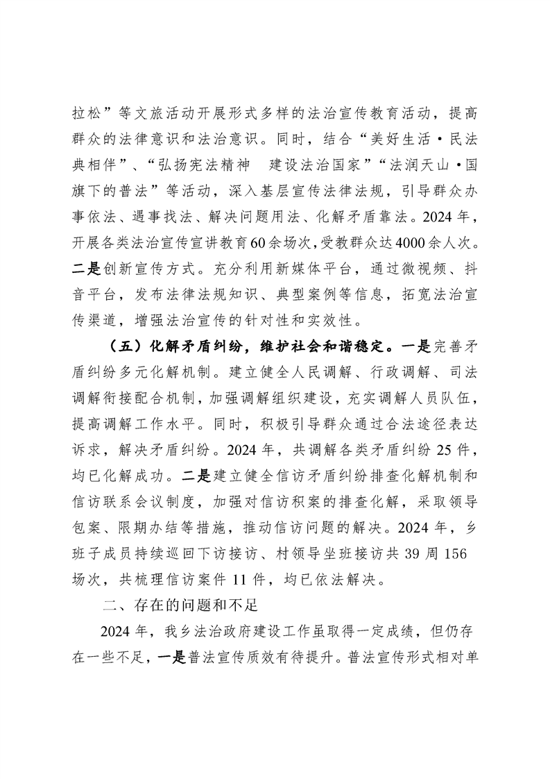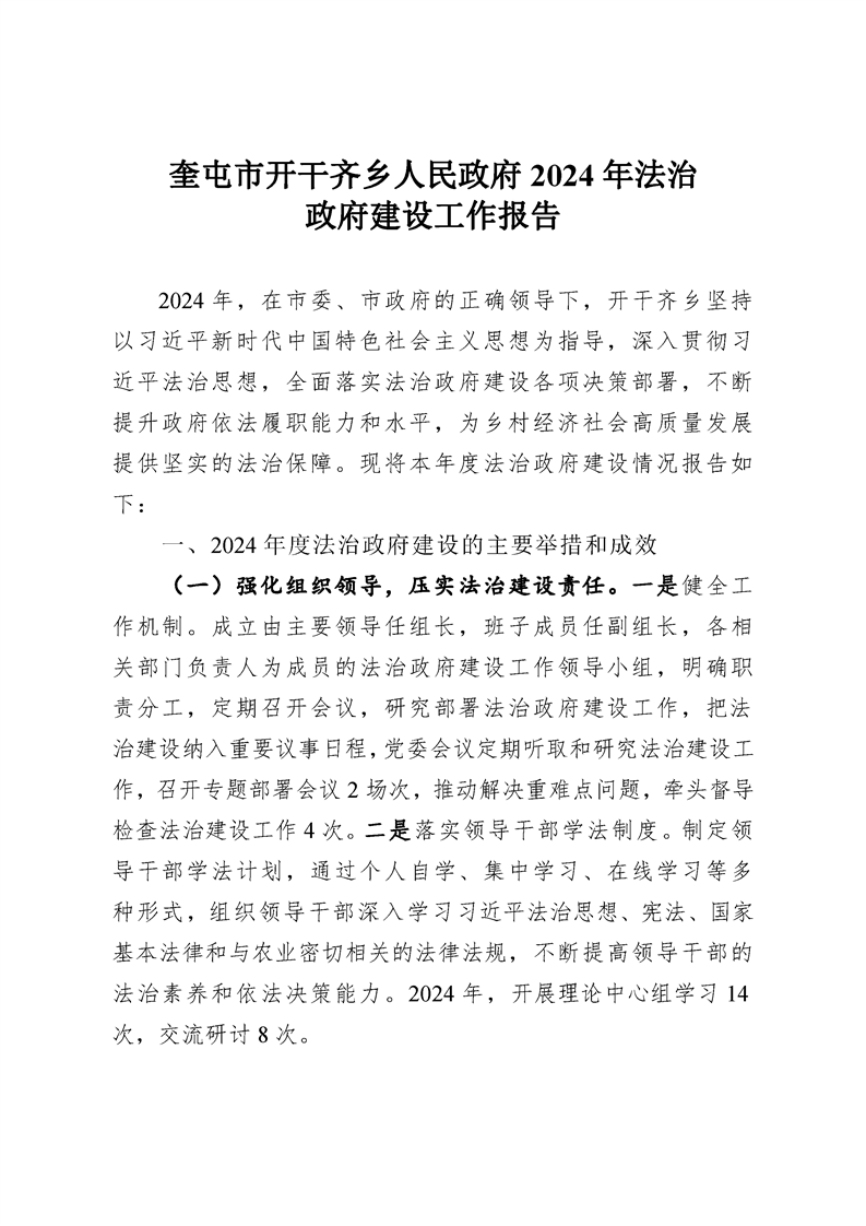 奎屯市开干齐乡人民政府2024年法治政府建设工作报告
