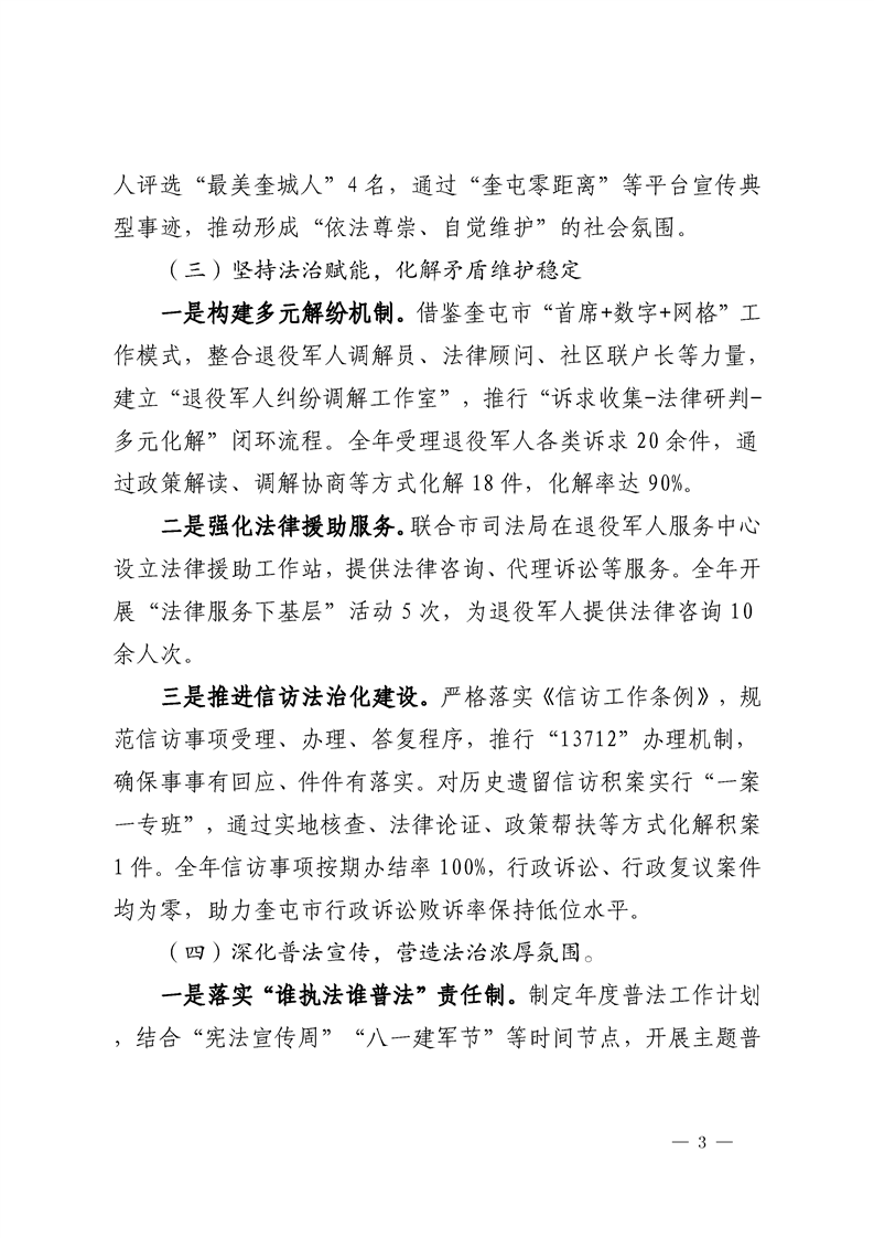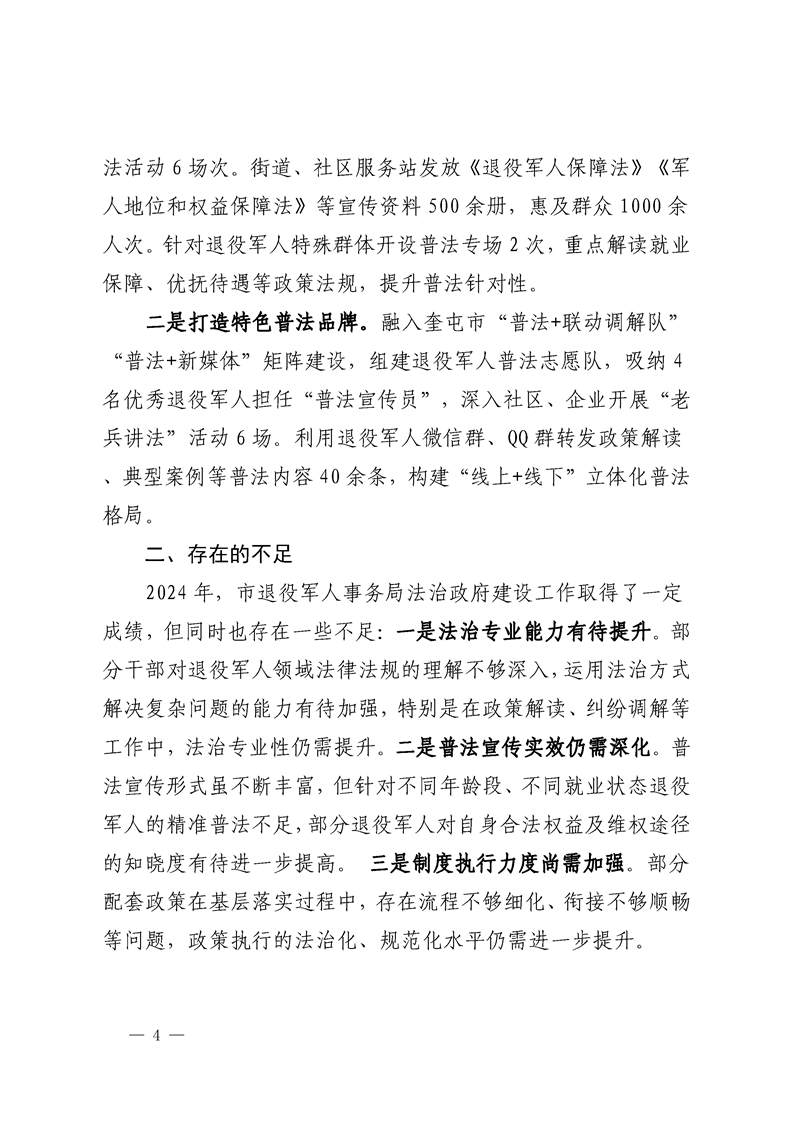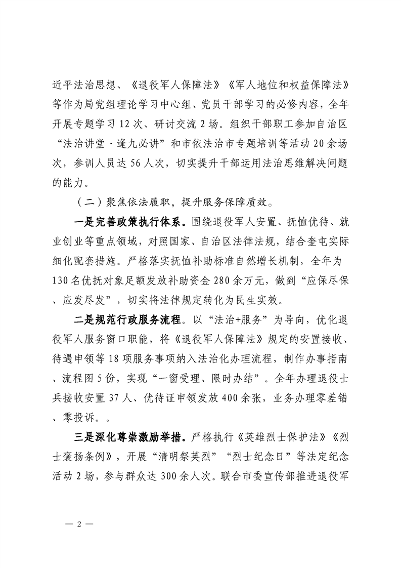 奎屯市退役军人事务局2024年度法治政府工作报告