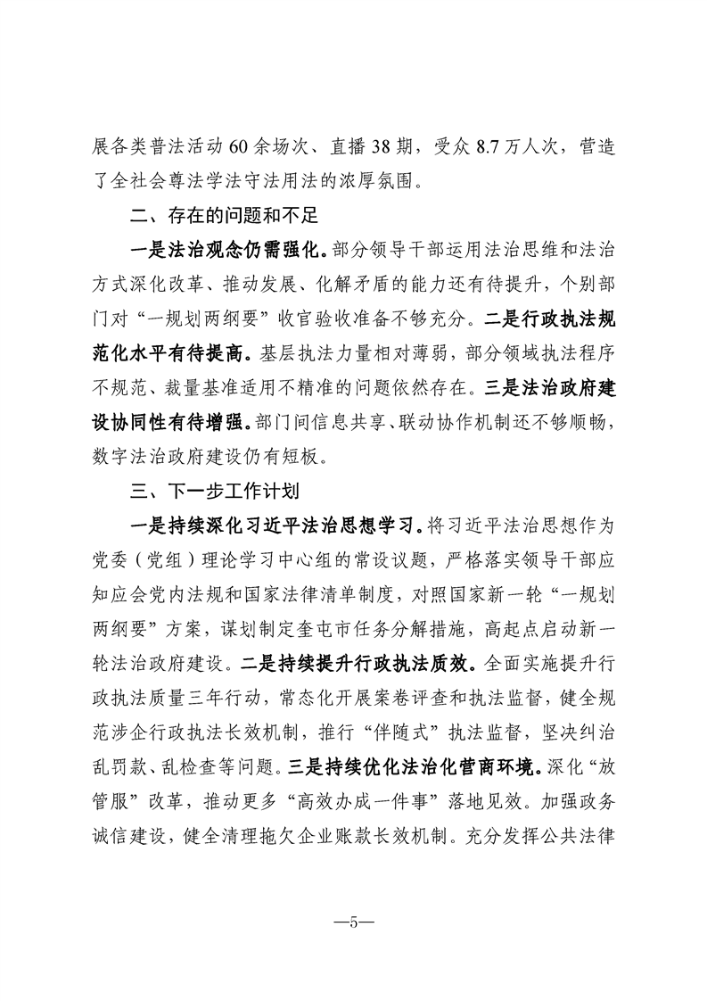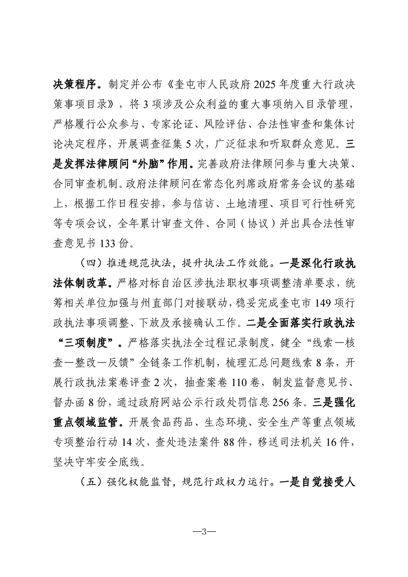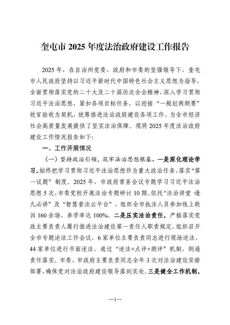 奎屯市2025年度法治政府建设工作报告