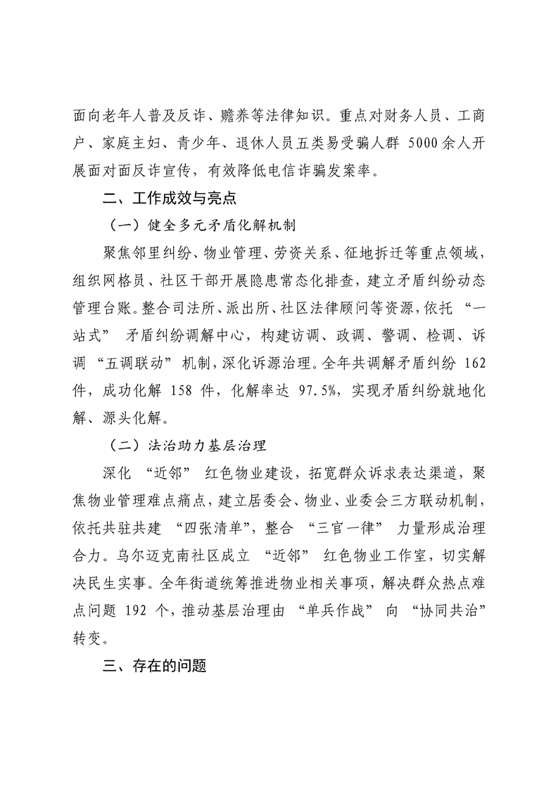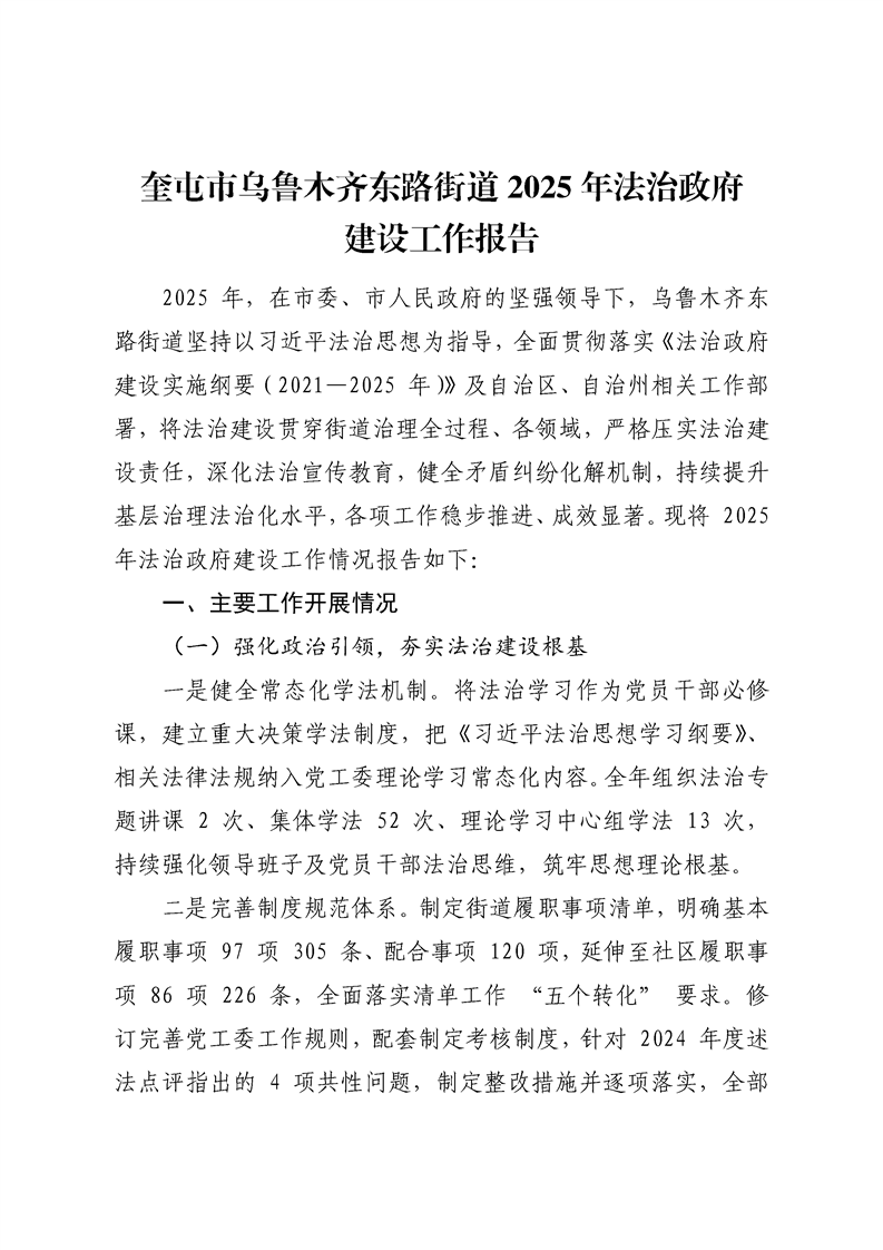 奎屯市乌鲁木齐东路街道2025年法治政府建设工作报告