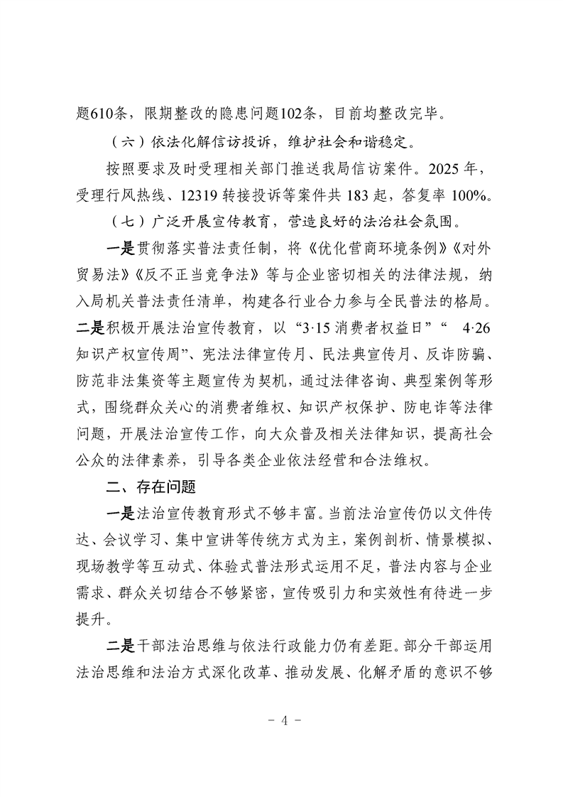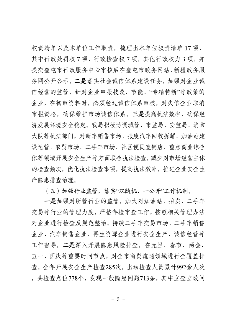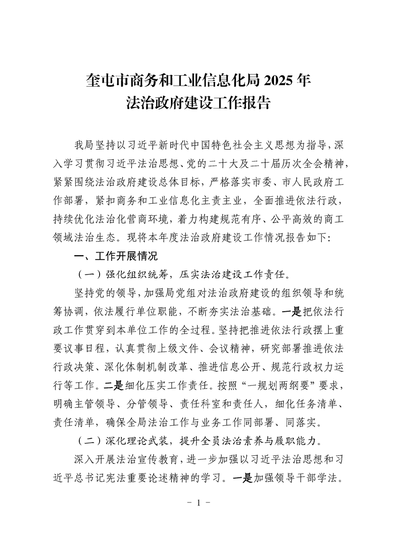 奎屯市商务和工业信息化局2025年法治政府建设工作报告