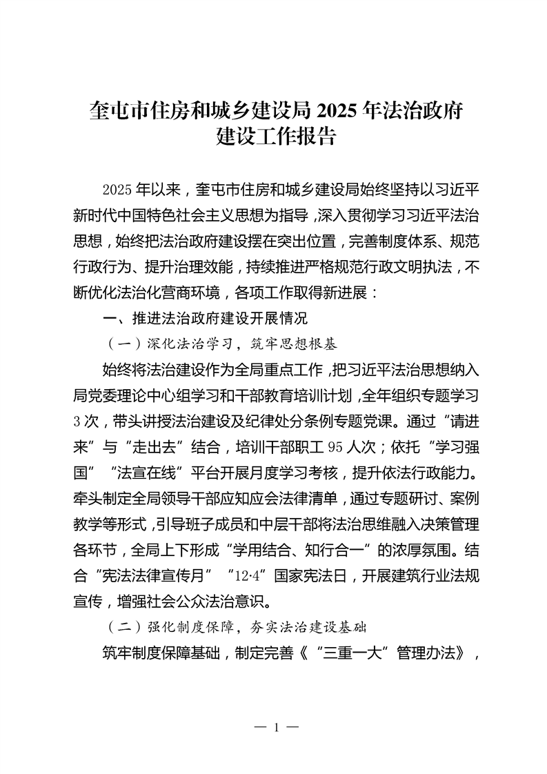 奎屯市住房和城乡建设局2025年法治政府建设工作报告