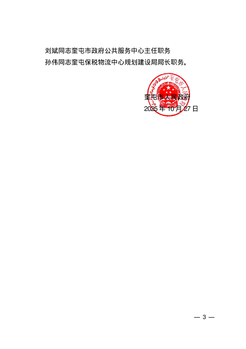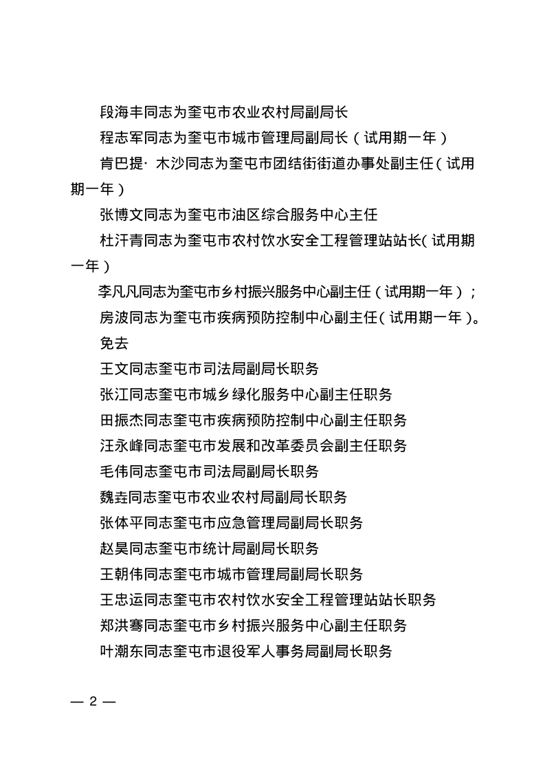 关于王新怀等同志职务任免的通知 奎政发〔2025〕27号