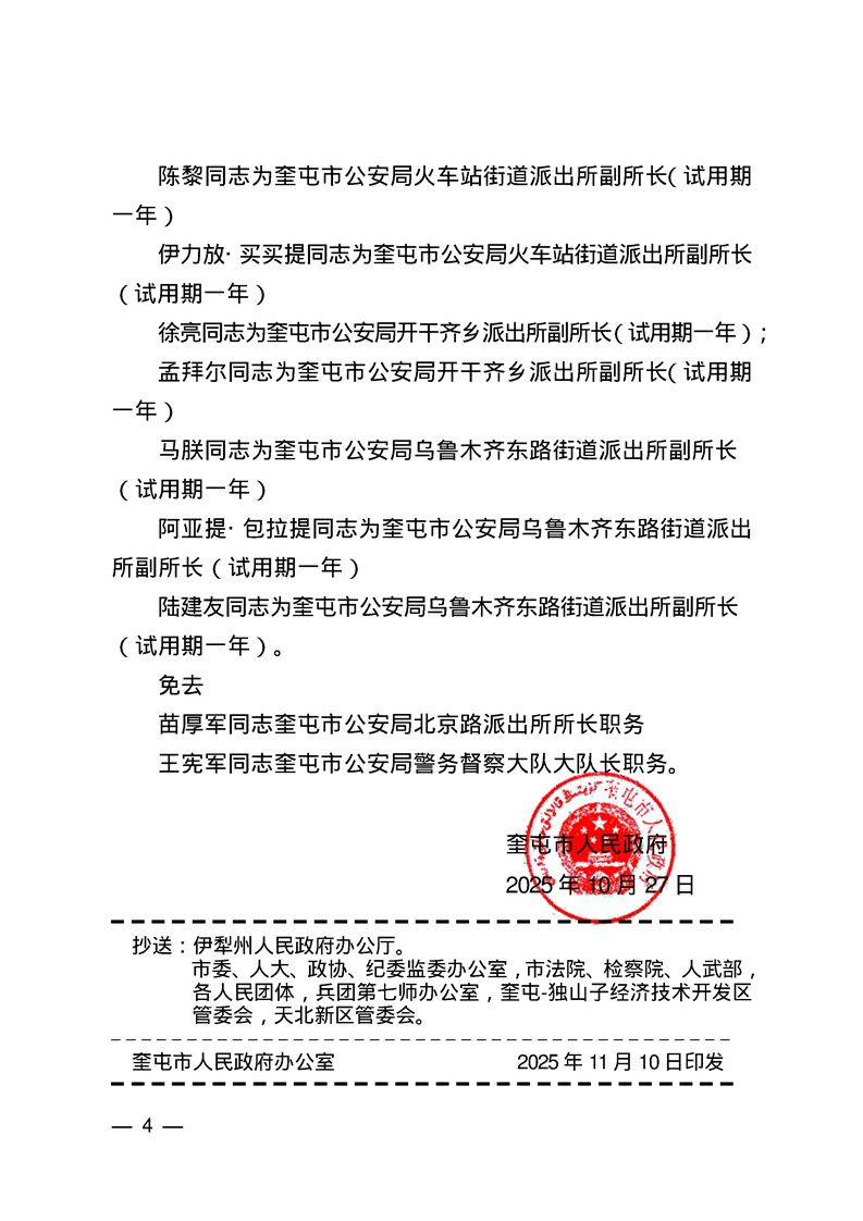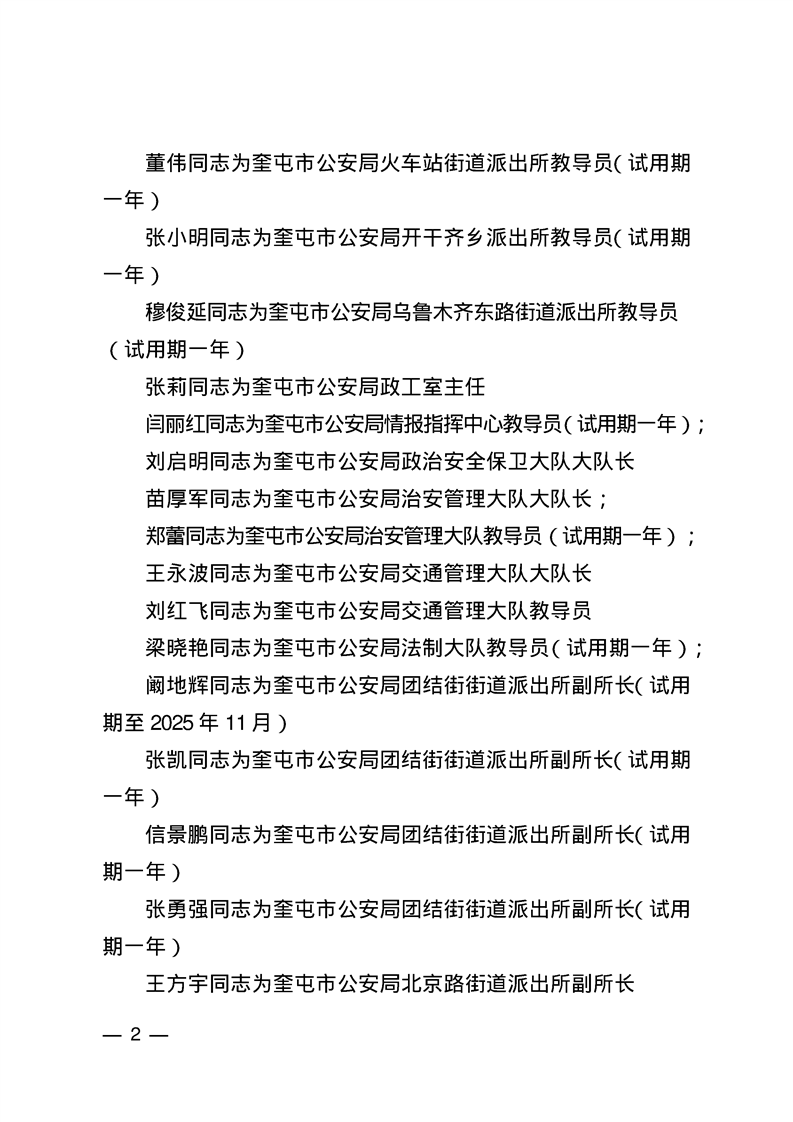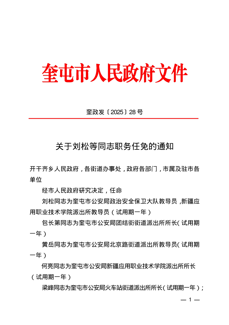 关于刘松等同志职务任免的通知 奎政发〔2025〕28号