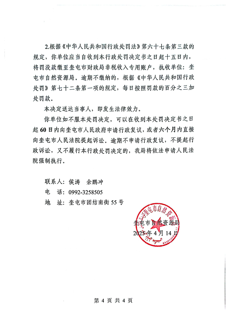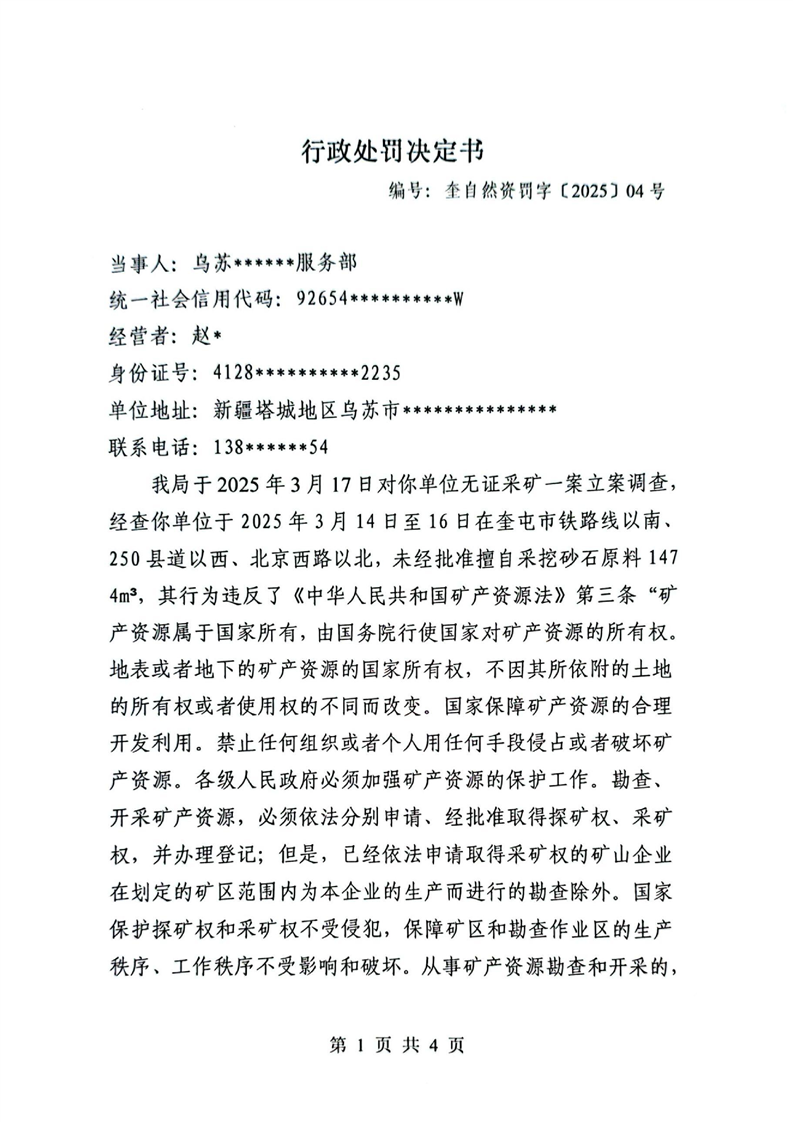 行政处罚决定书 编号:奎自然资罚字【2025】04号