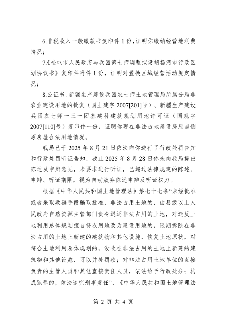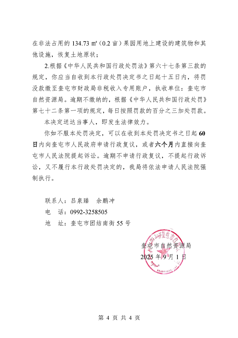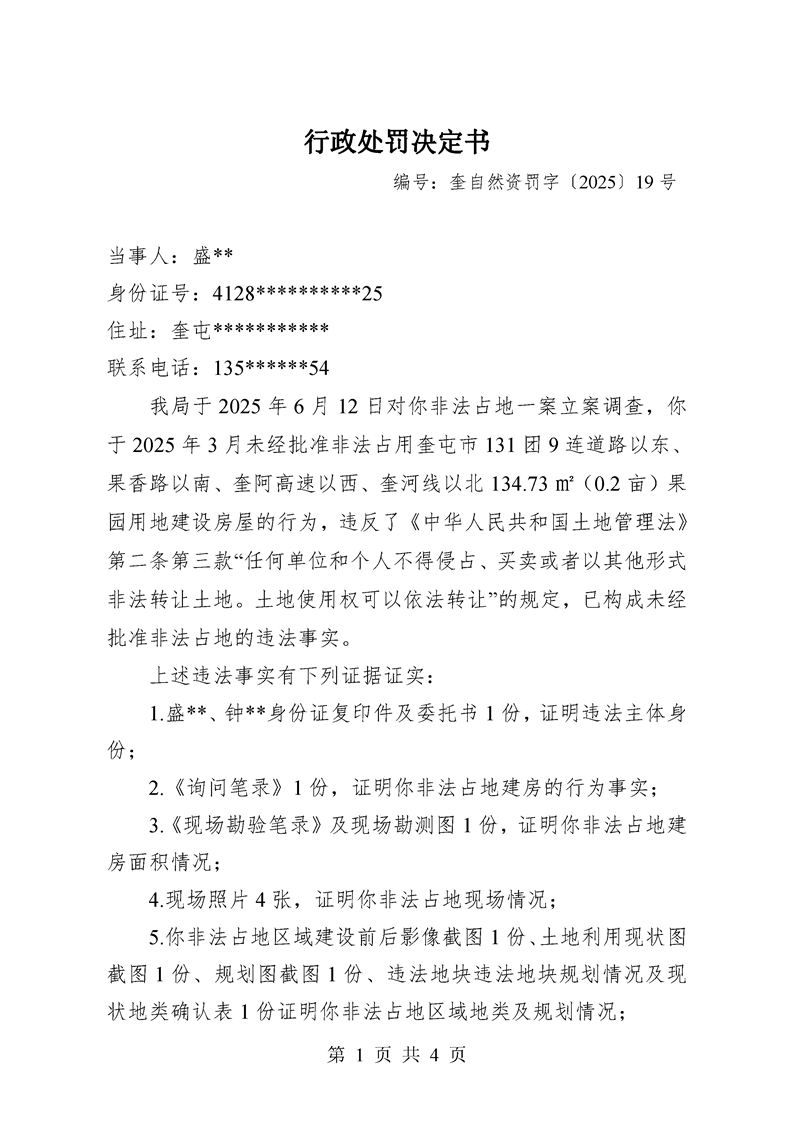 行政处罚决定书 编号:奎自然资罚字〔2025〕19号
