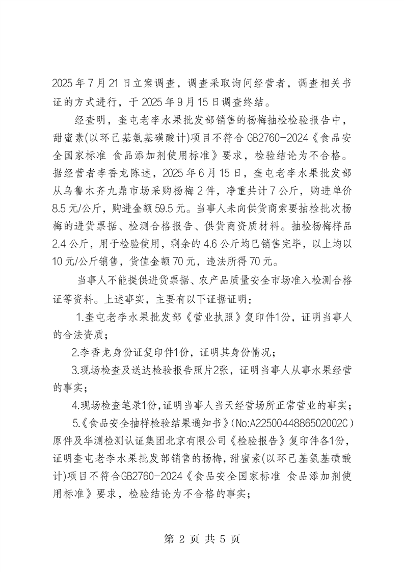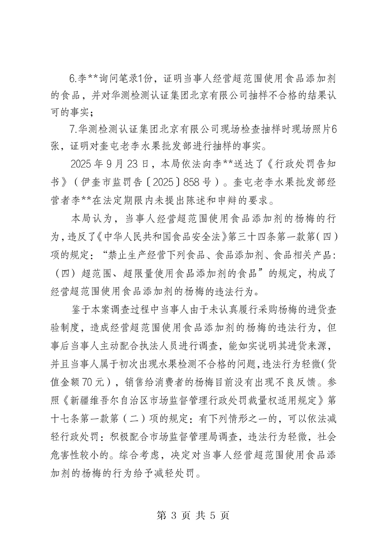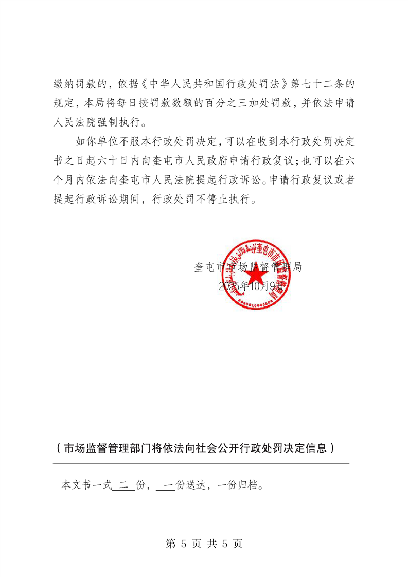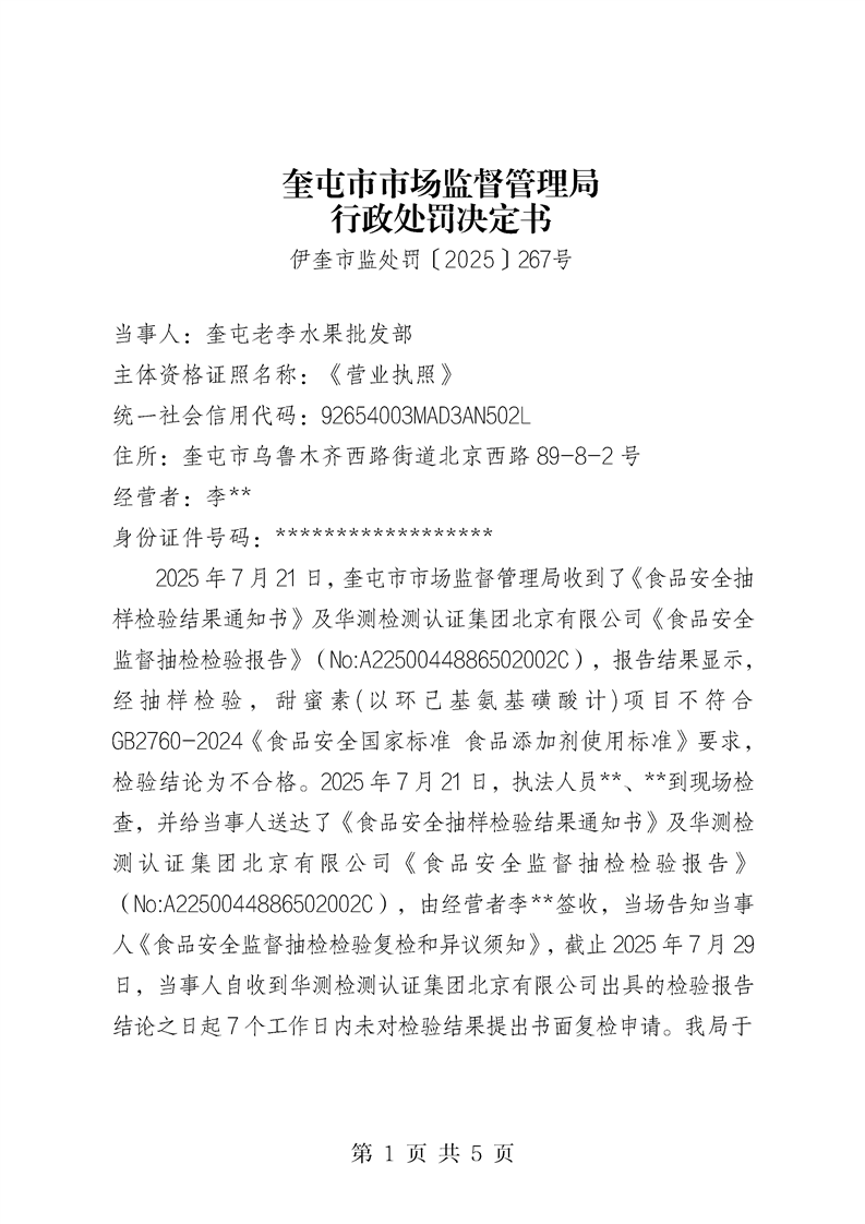 奎屯市市场监督管理局行政处罚决定书 伊奎市监处罚〔2025〕267号