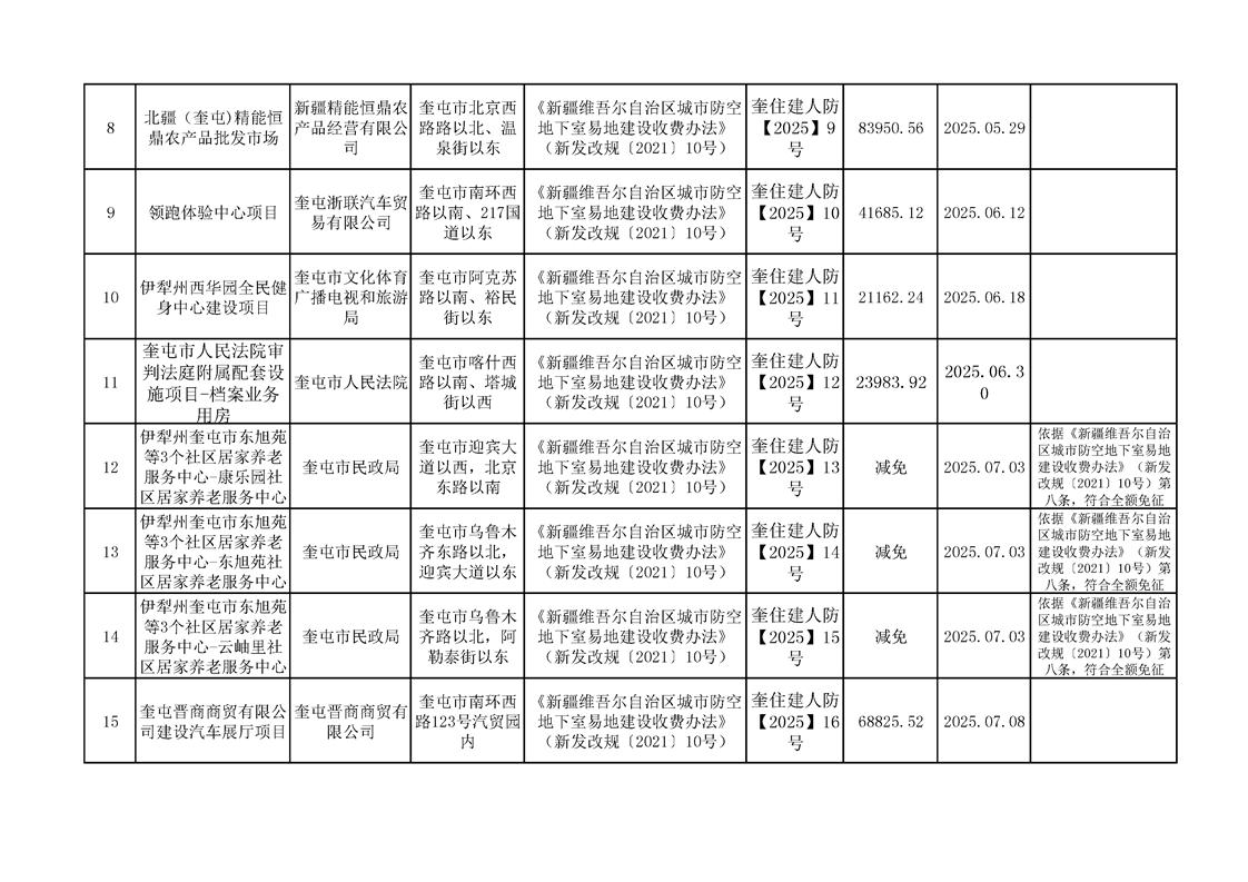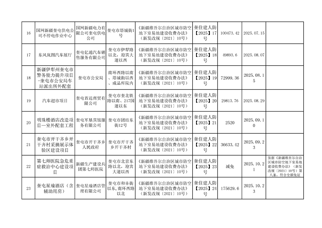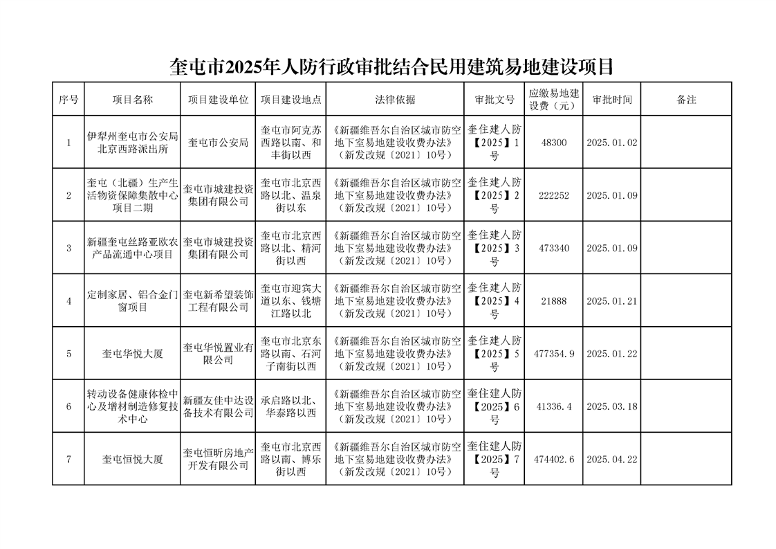 奎屯市2025年人防行政审批结合民用建筑易地建设项目