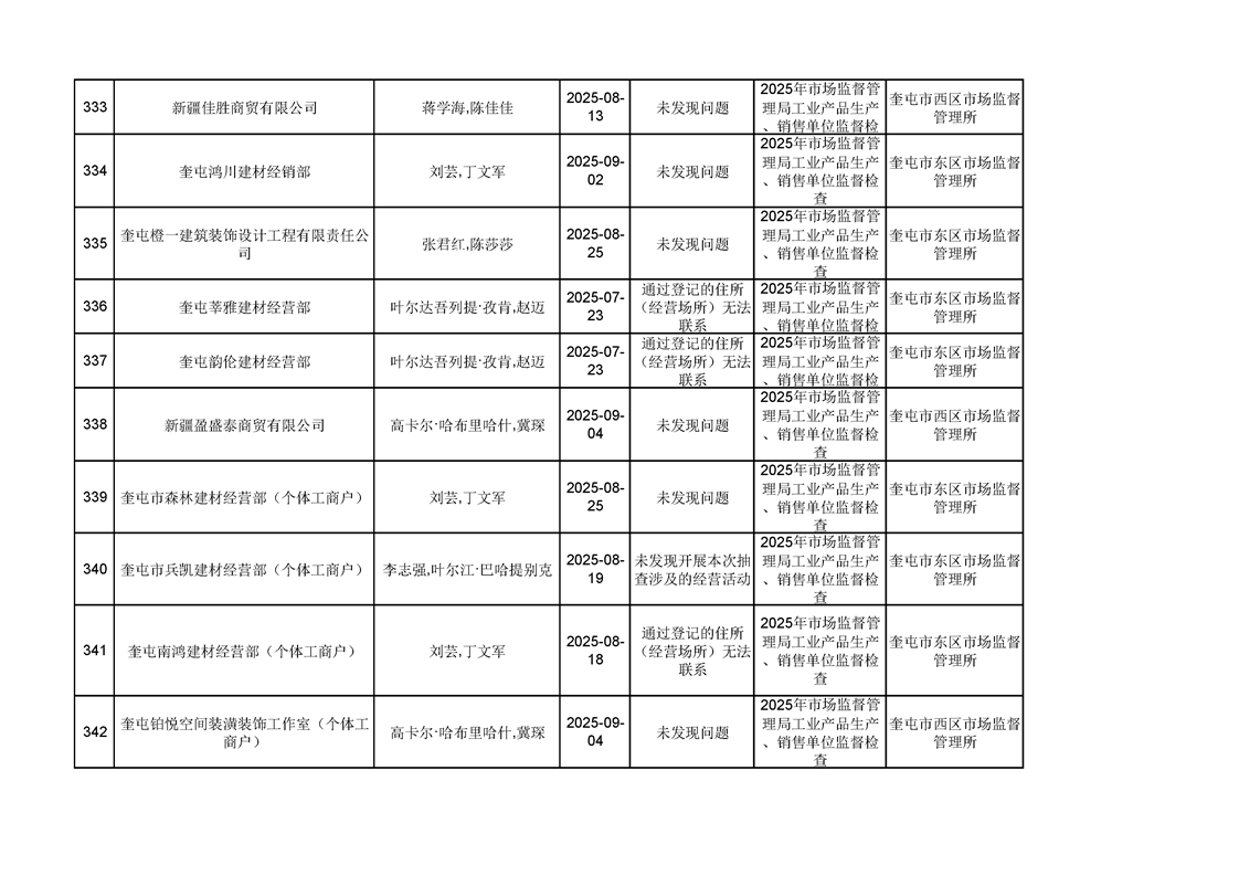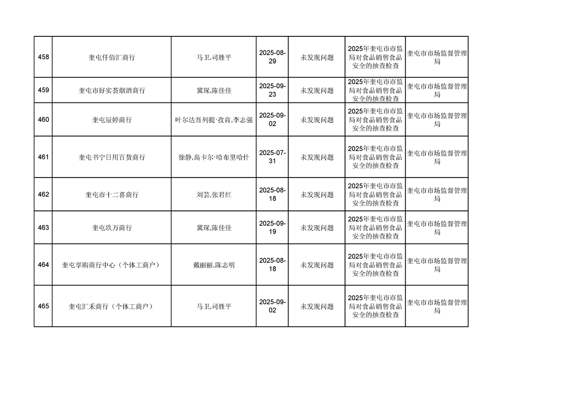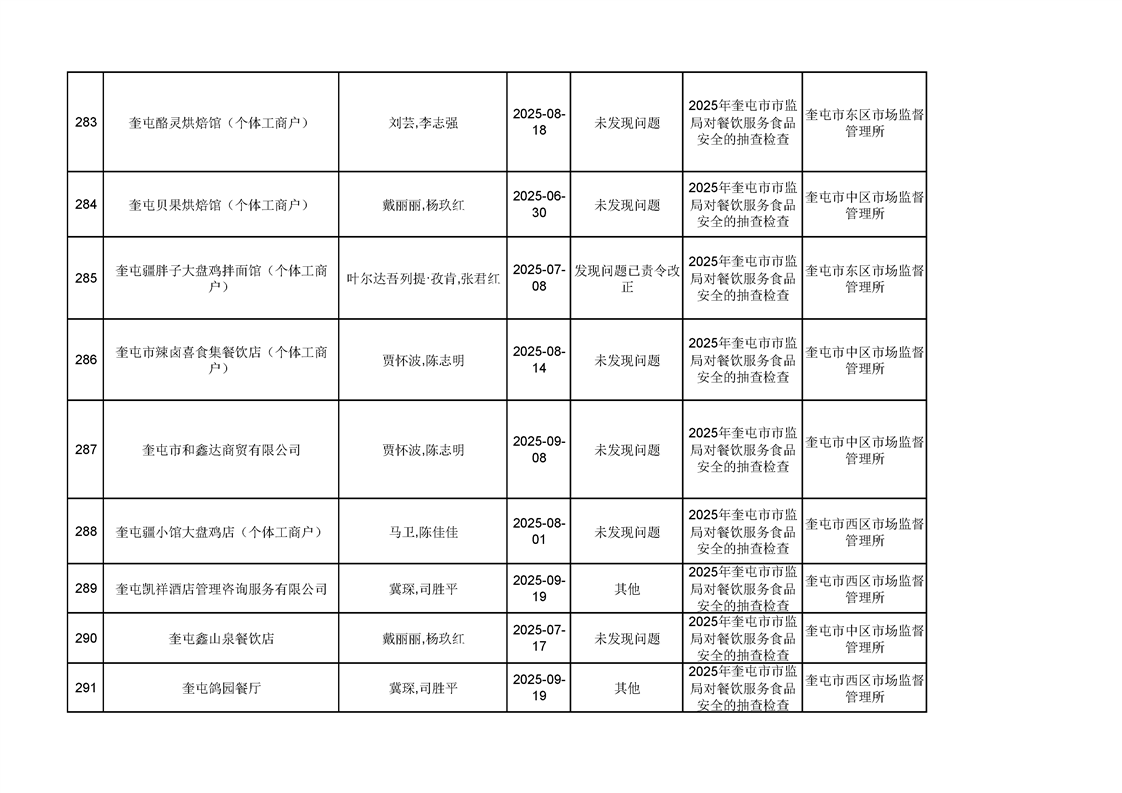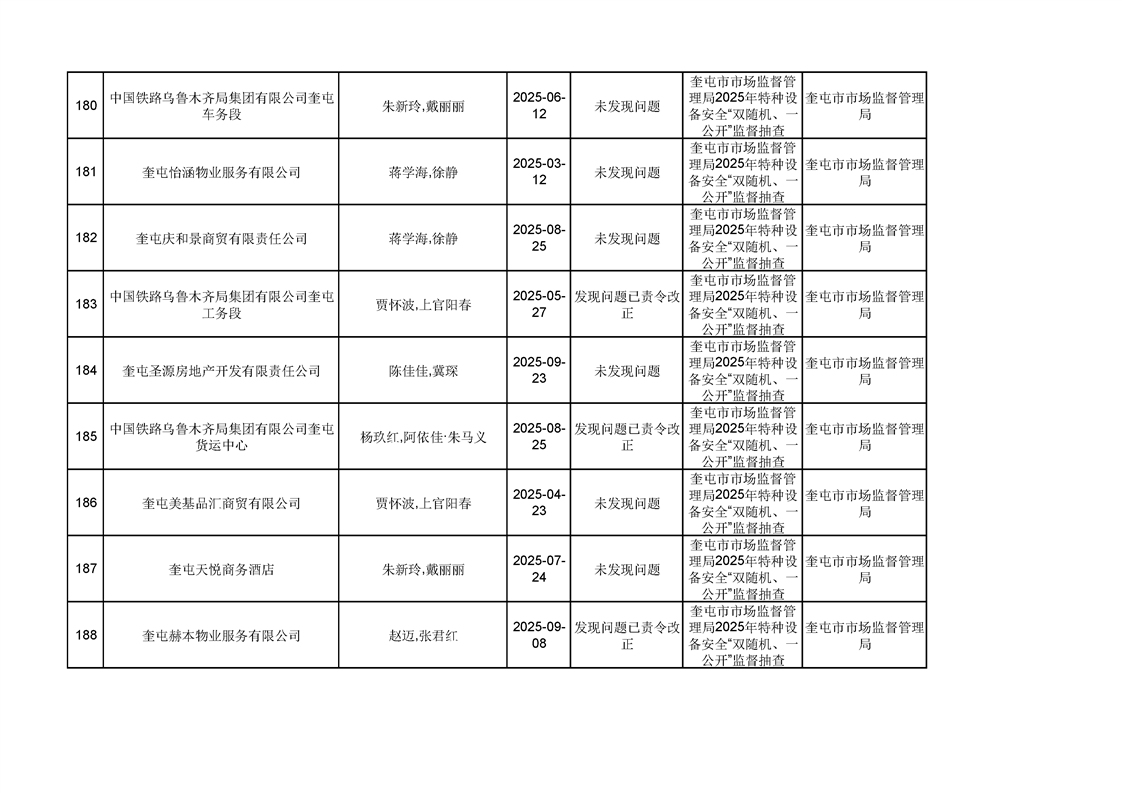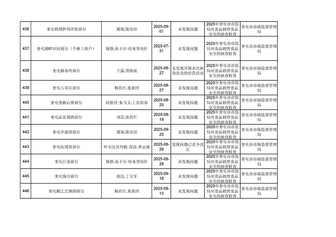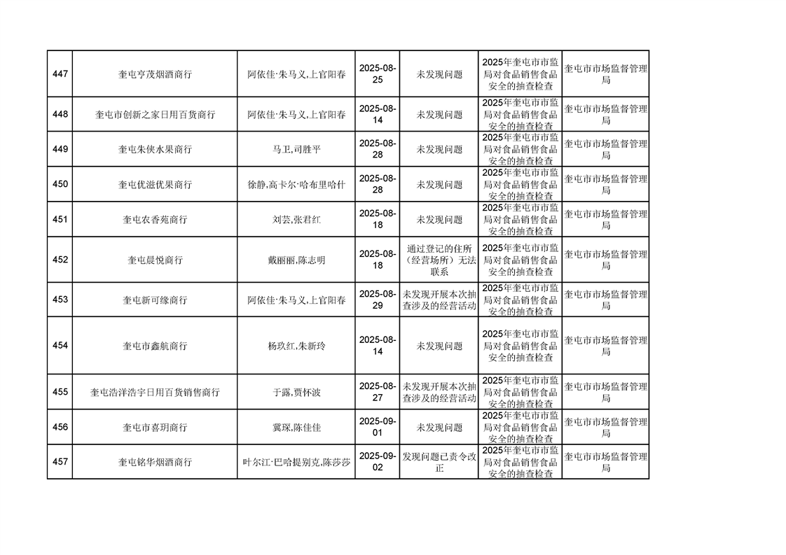2025年奎屯市市场监督管理局内部“双随机、一公开”年度抽查结果