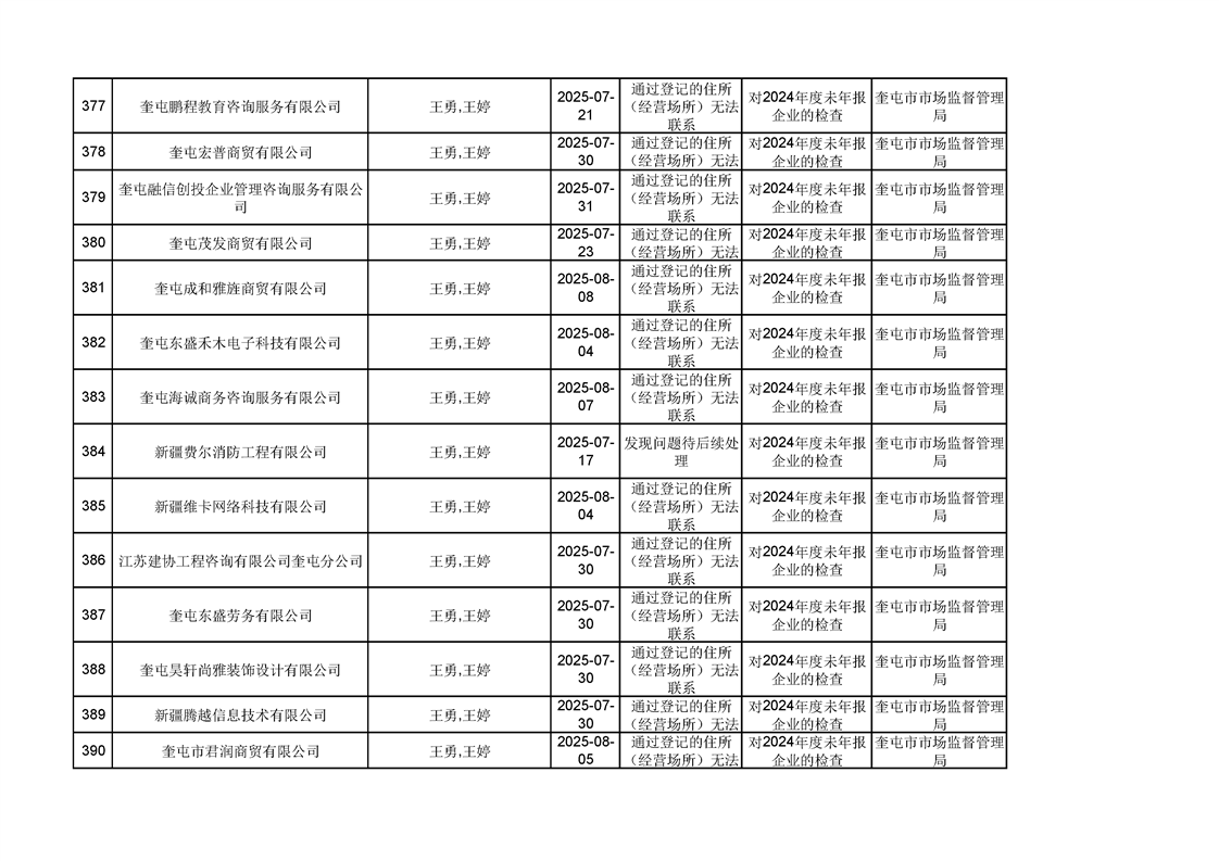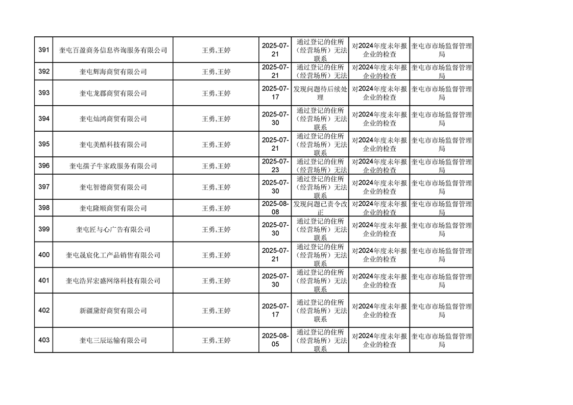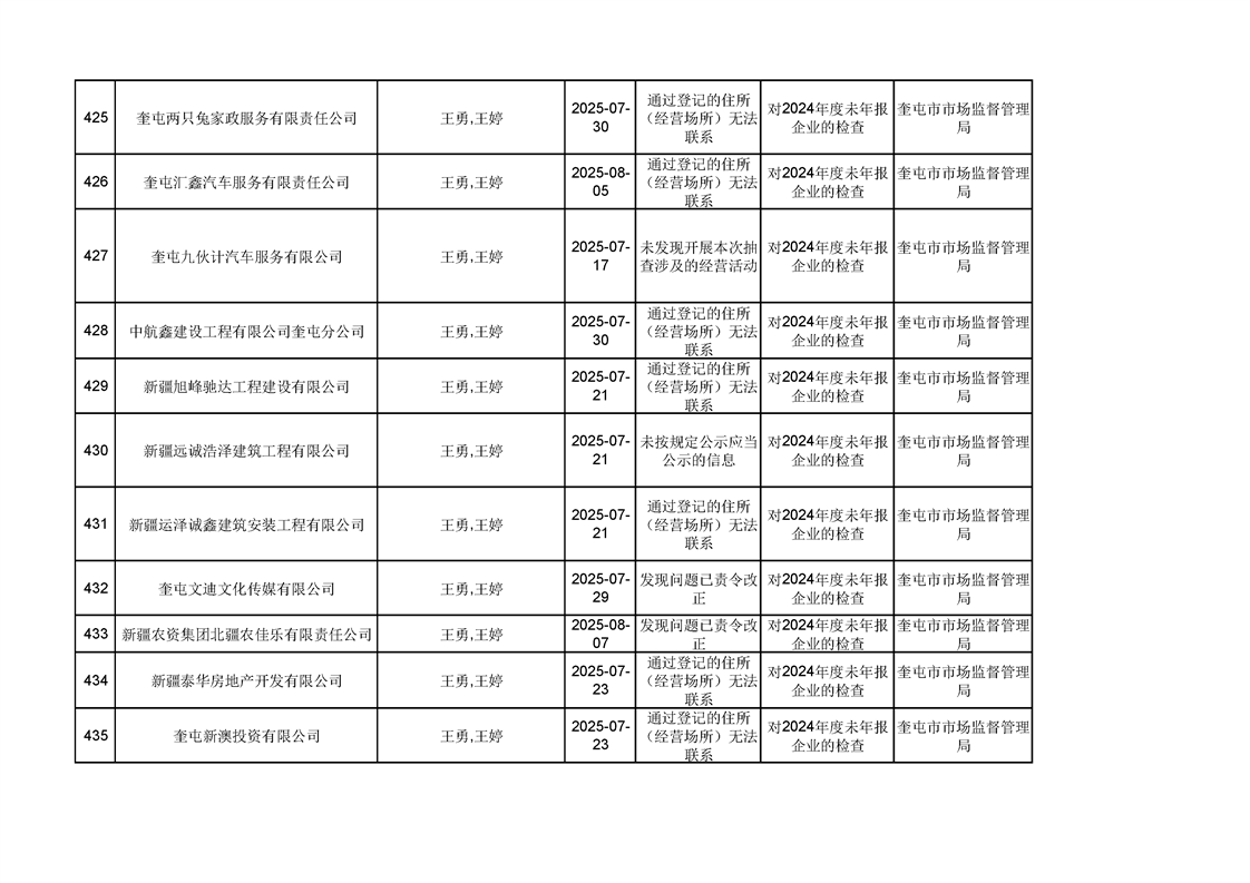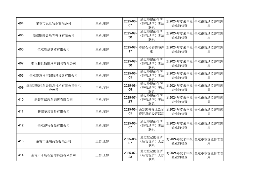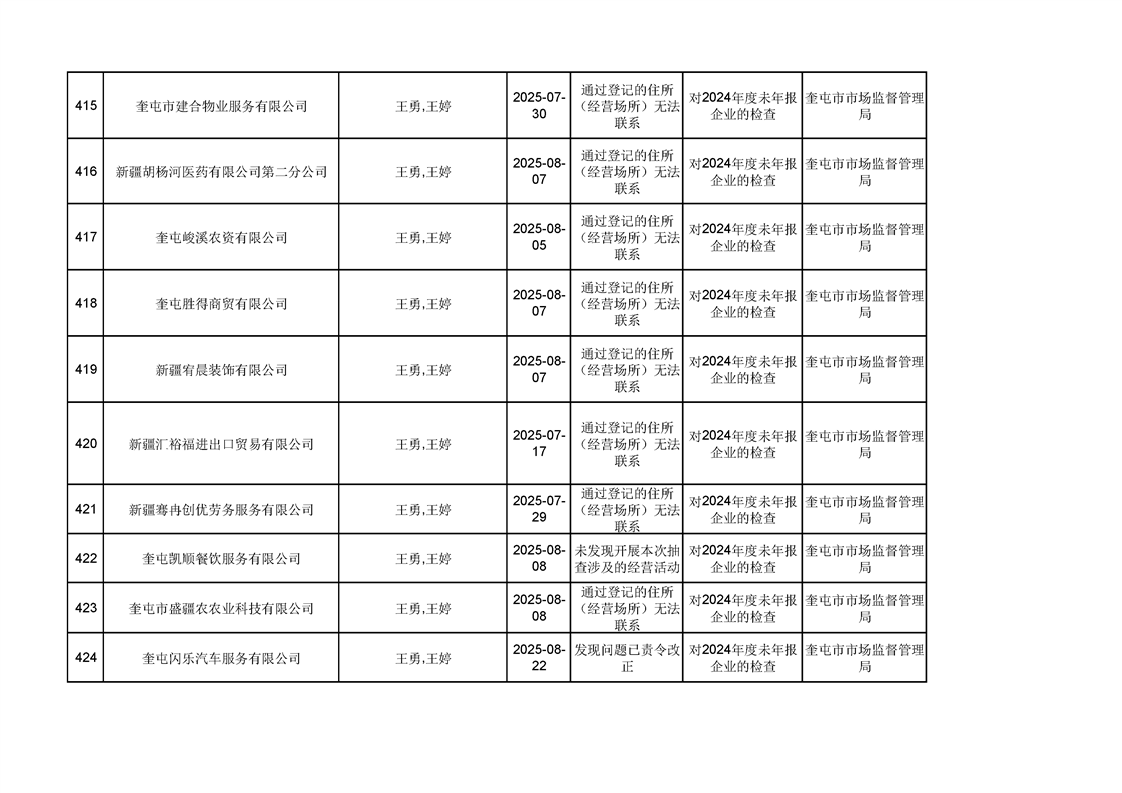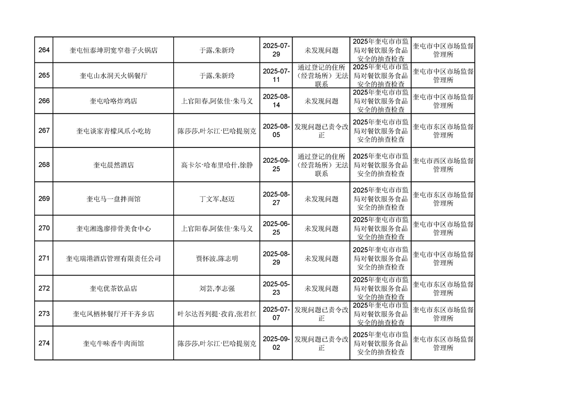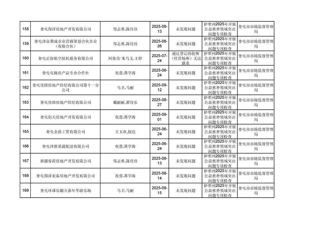 2025年奎屯市市场监督管理局内部“双随机、一公开”年度抽查结果