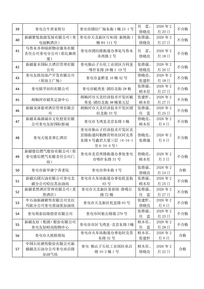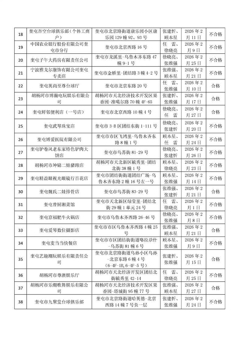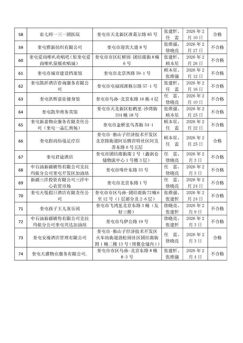 奎屯市消防救援局2026年2月双随机抽查结果公示栏