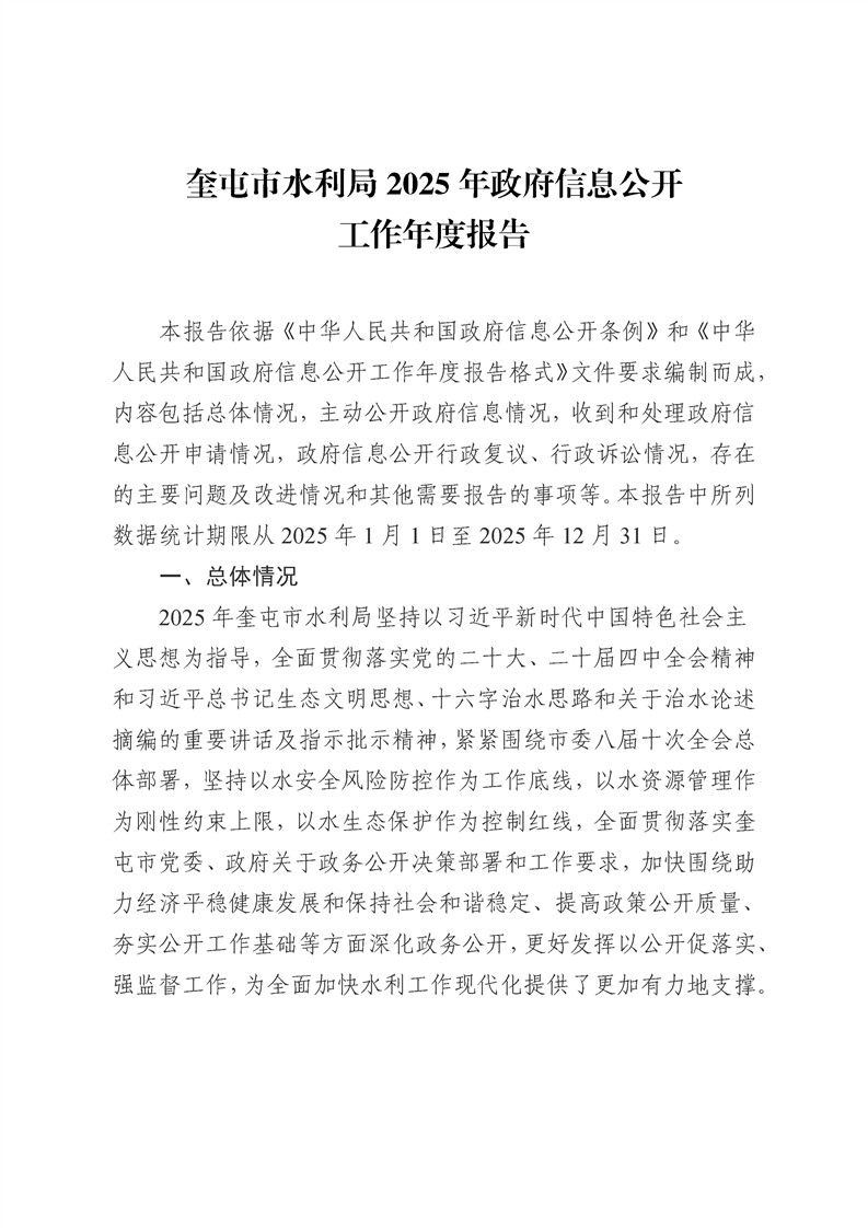 奎屯市水利局2025年政府信息公开工作年度报告
