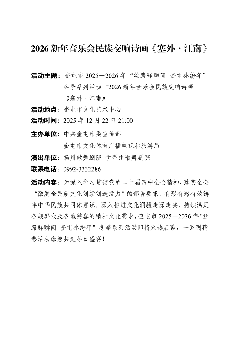 【文化】2026 新年音乐会民族交响诗画《塞外·江南》
