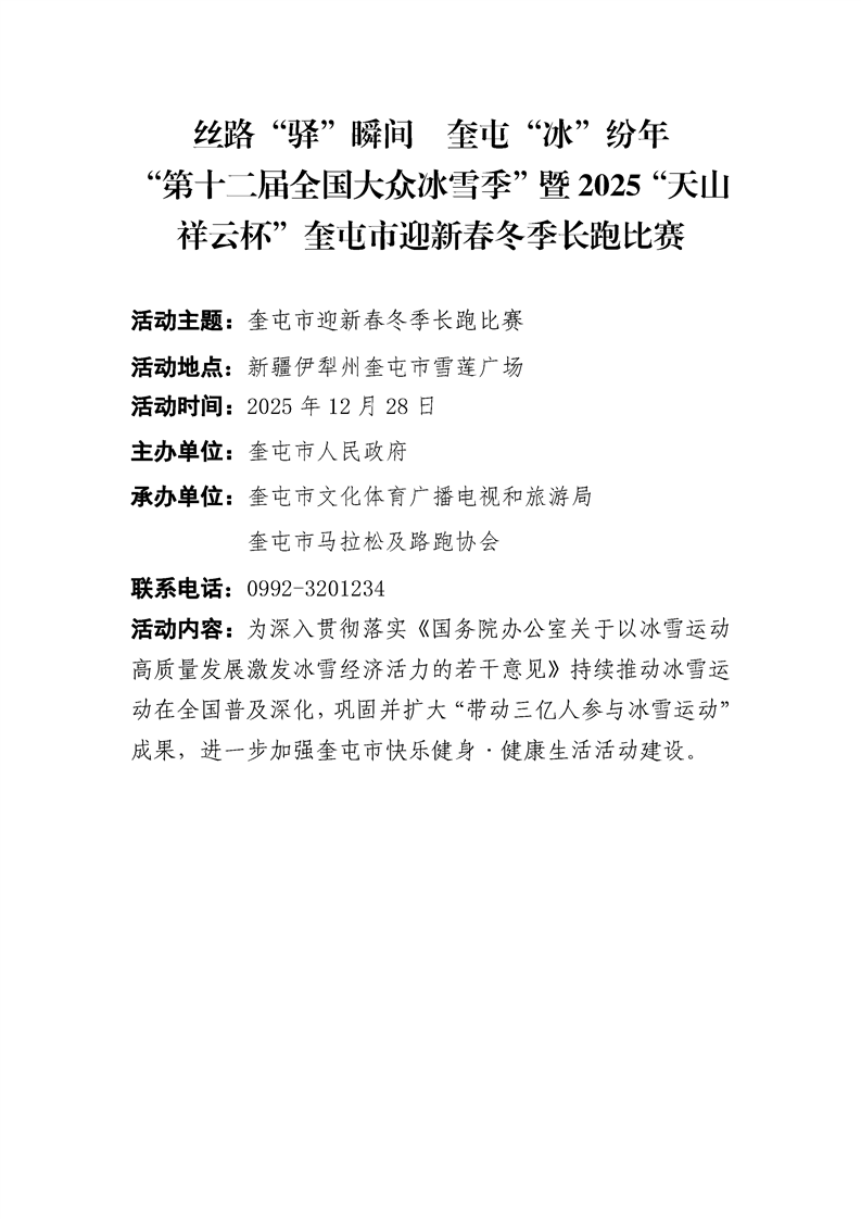 【文化旅游】丝路“驿”瞬间 奎屯“冰”纷年“第十二届全国大众冰雪季”暨 2025“天山 祥云杯”奎屯市迎新春冬季长跑比赛
