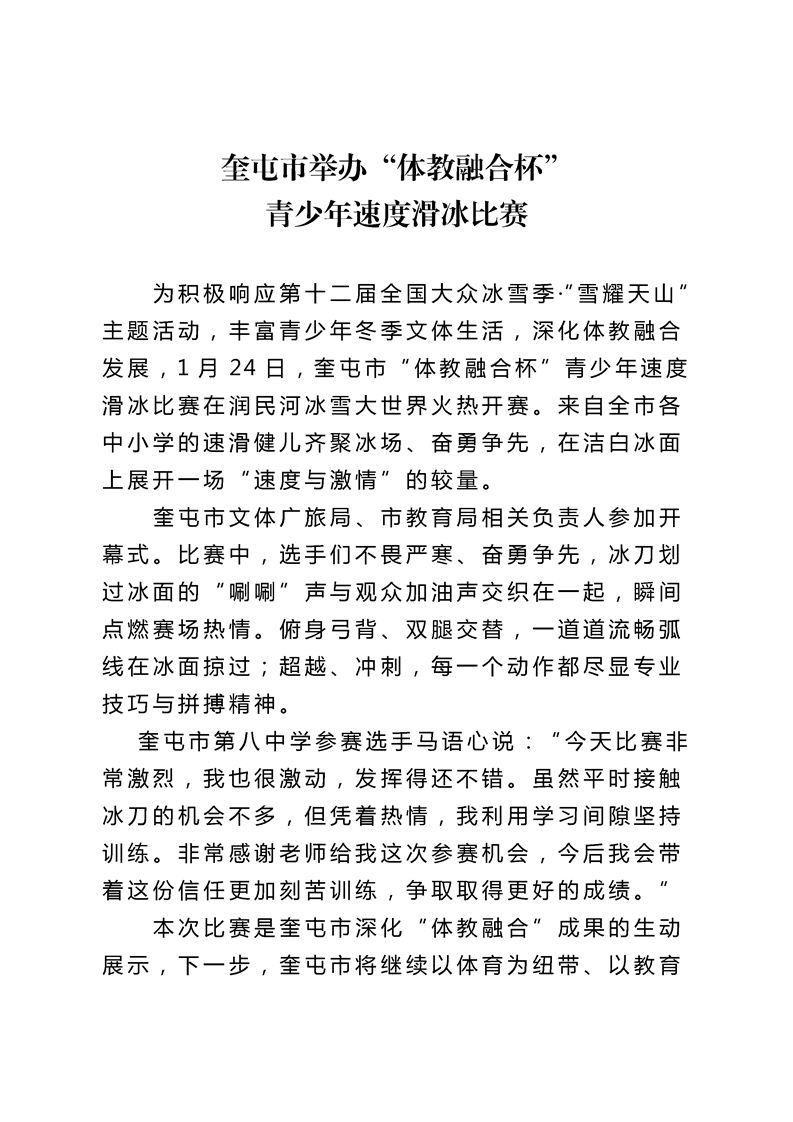 【文化旅游】奎屯市举办“体教融合杯”青少年速度滑冰比赛