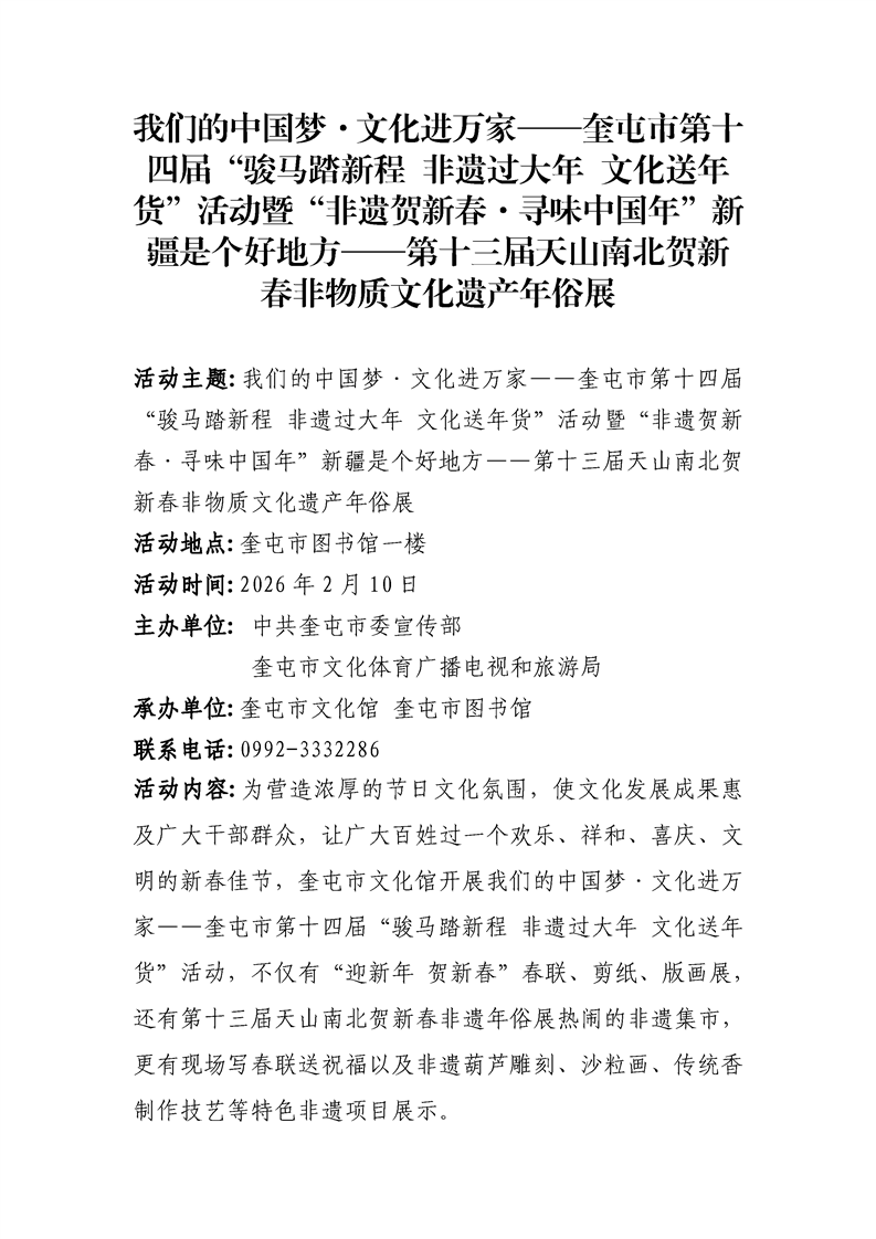 【文化旅游】第十三届天山南北贺新春非物质文化遗产年俗展