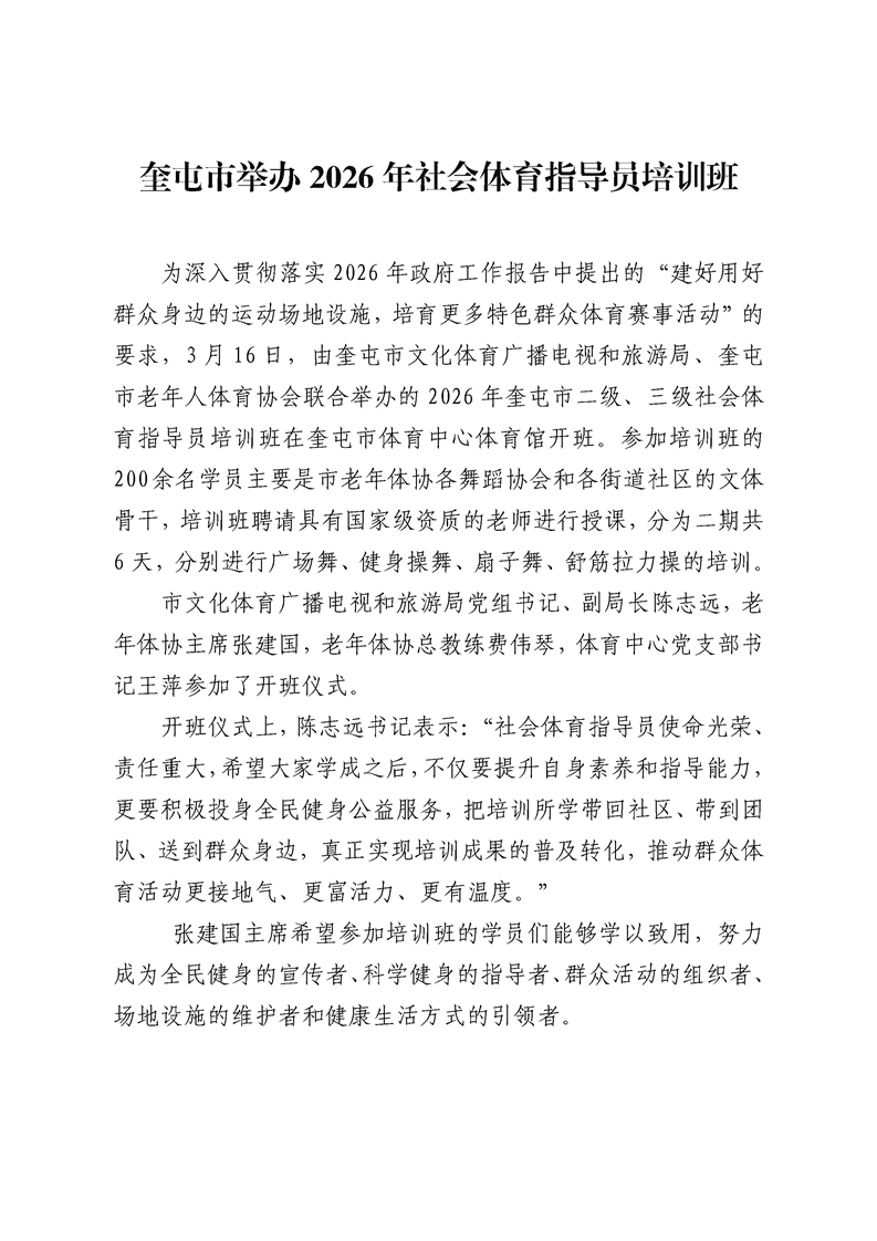 【文化】奎屯市举办2026年社会体育指导员培训班