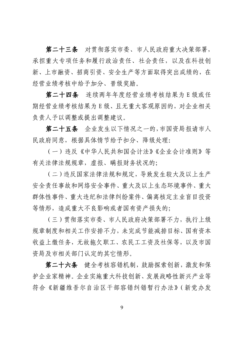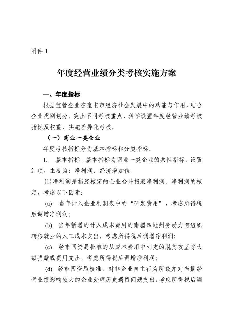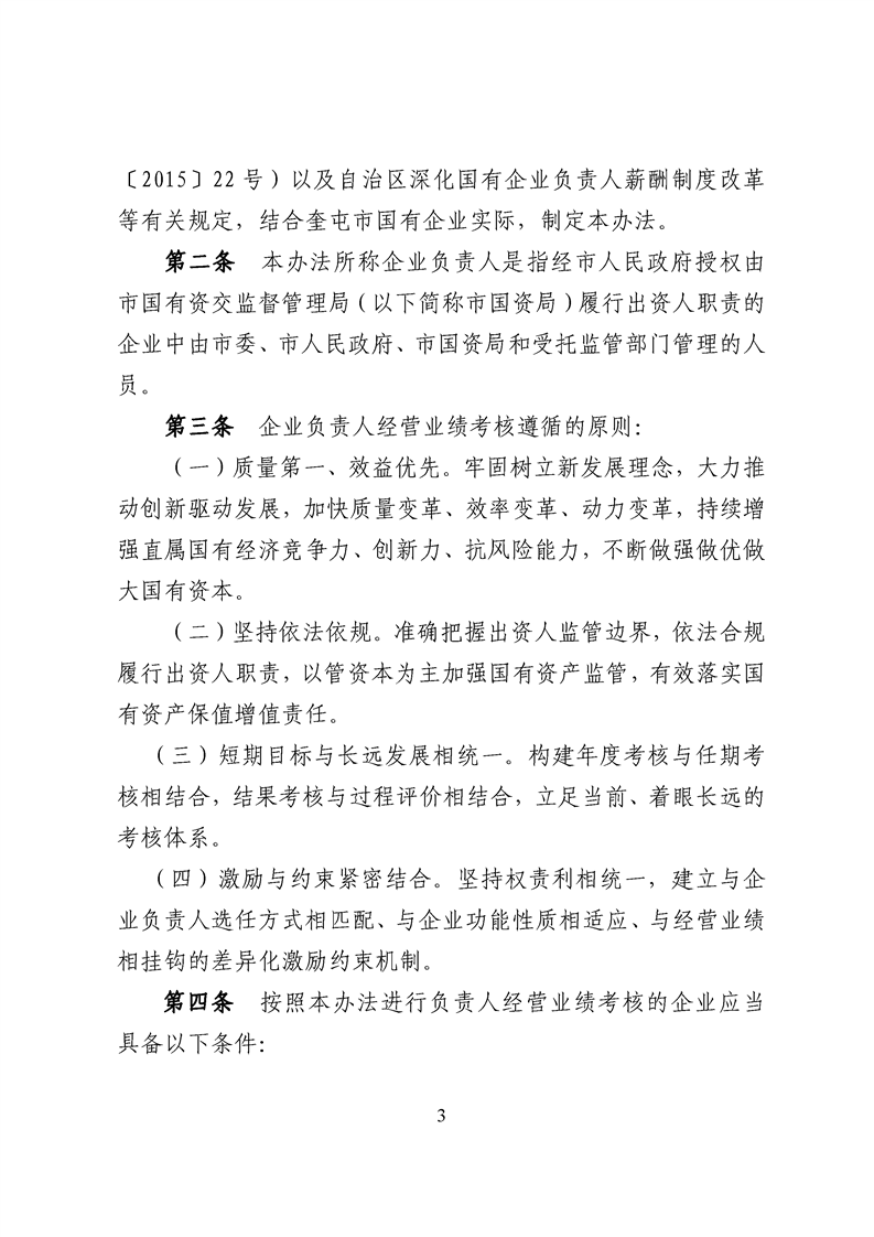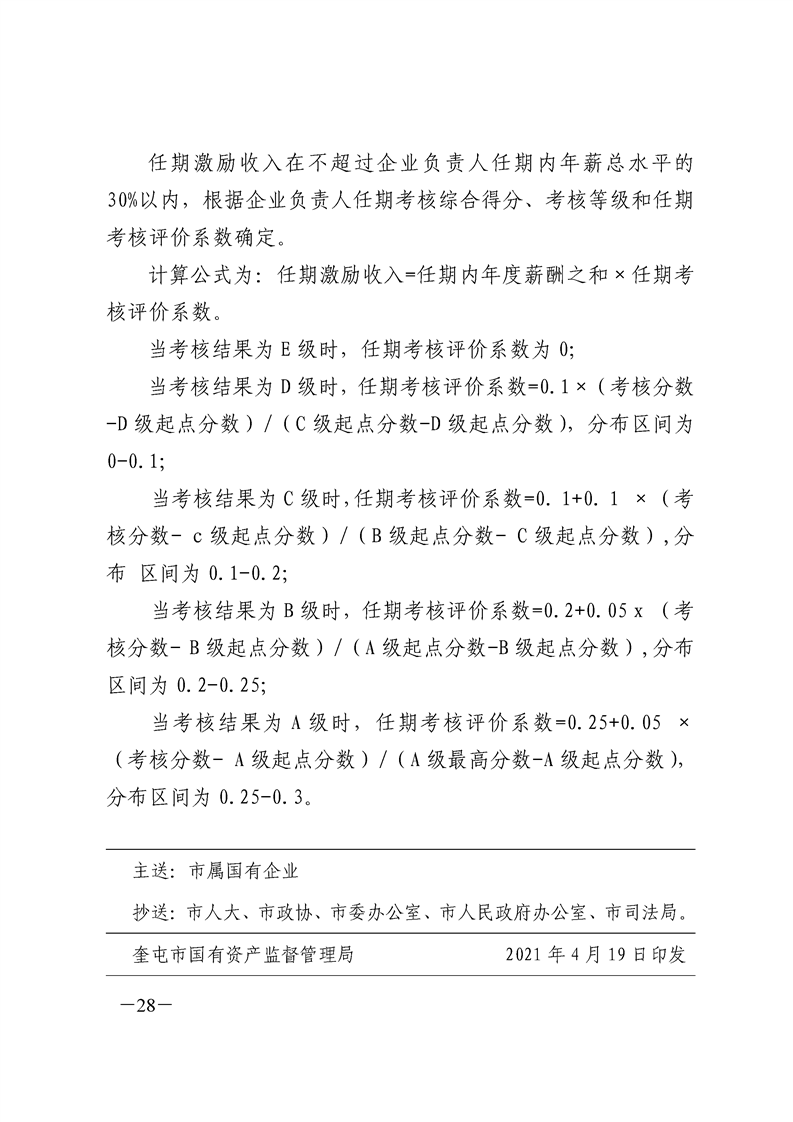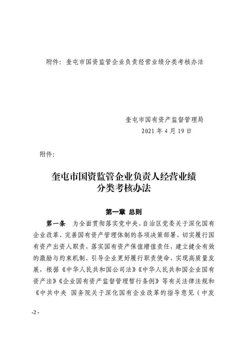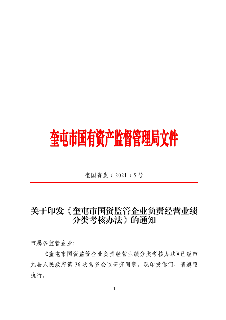 关于印发《奎屯市国资监管企业负责经营业绩分类考核办法》的通知 (奎国资发﹝2021﹞5号)