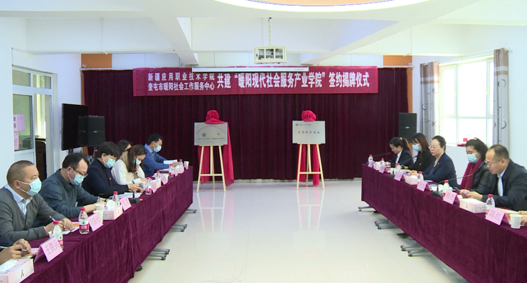 为进一步促进奎屯市社会服务业发展,为人民群众提供更加专业细致的服务,日前,新疆应用职业技术学院与奎屯市暖阳社会工作服务中心共建的“暖阳现代社会服务产业学院”挂牌成立。