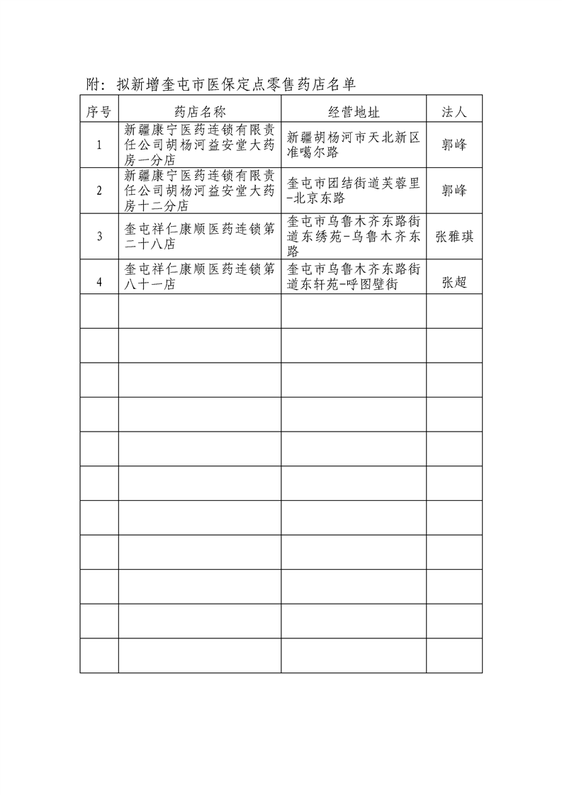 关于拟新增奎屯市医保定点零售药店的公 示