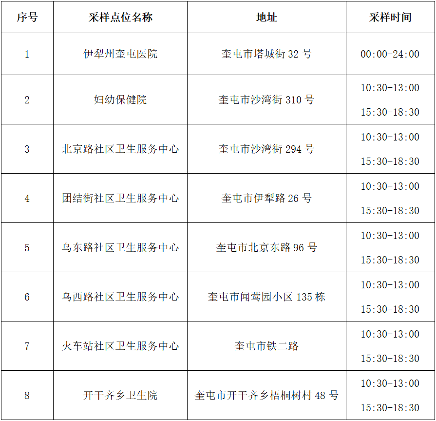 为满足广大市民核酸检测“愿检尽检”需要方便市民进行核酸采样,奎屯市进一步优化便民核酸采样点现将最新的点位予以公告。