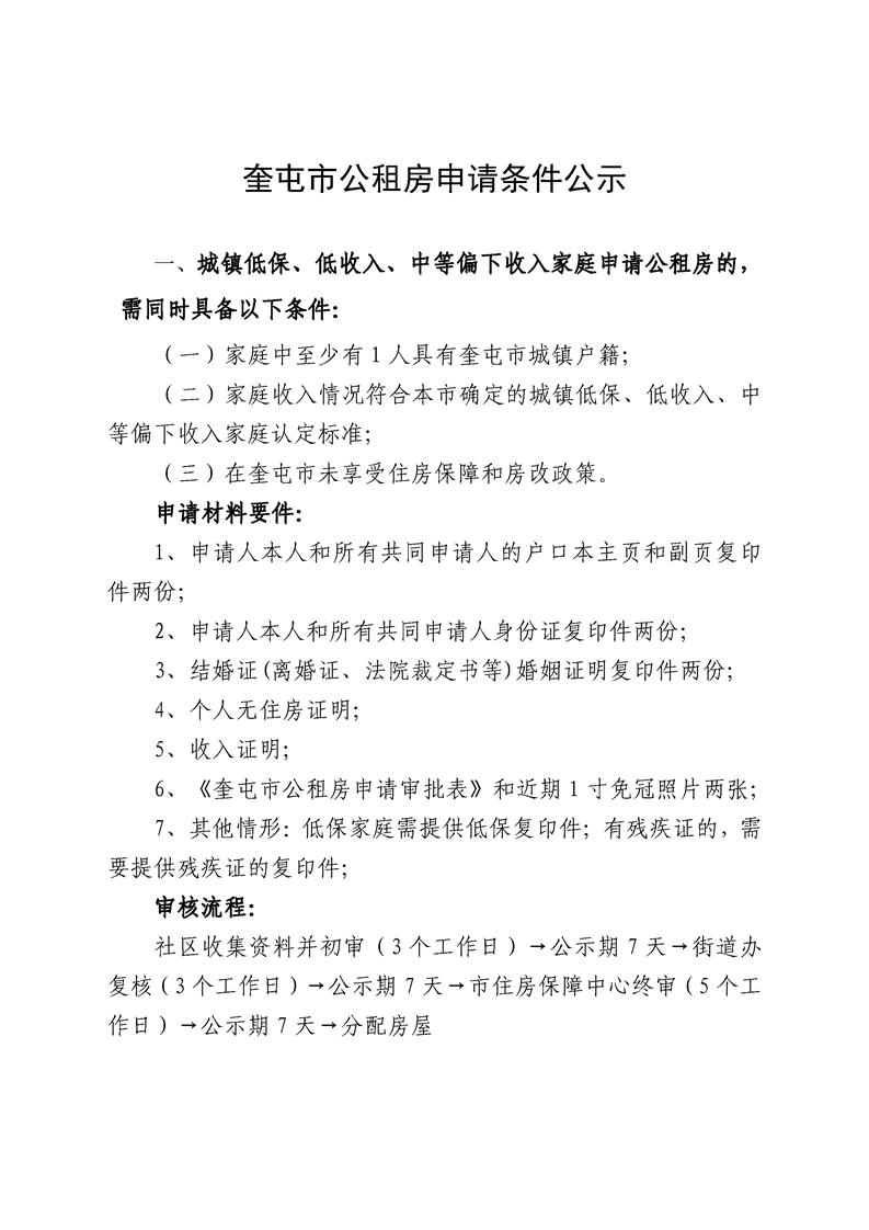 奎屯市公租房申请条件公示
