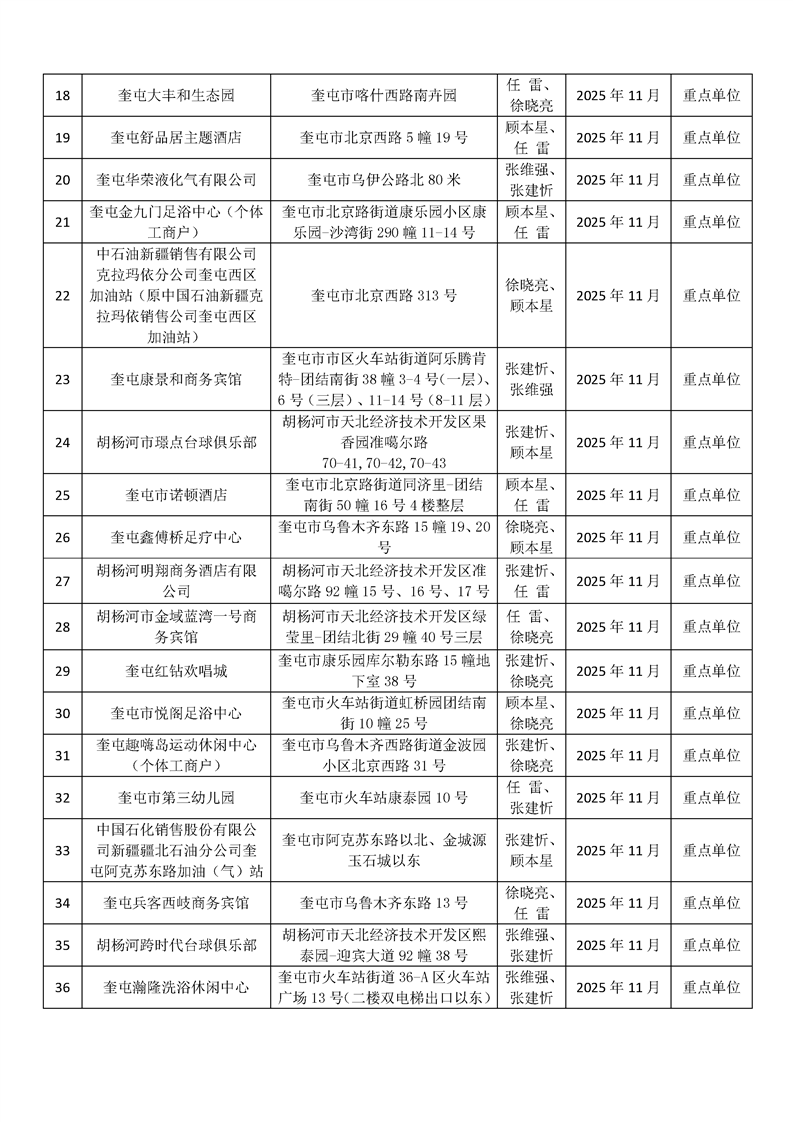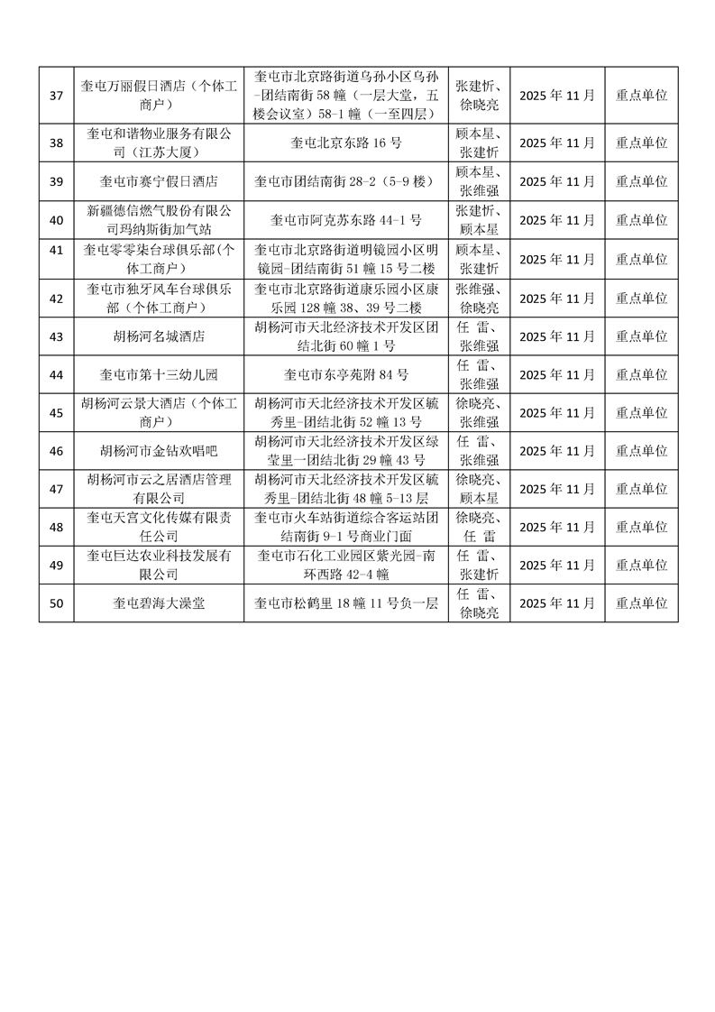 奎屯市消防救援大队2025年11月双随机抽查单位公开表