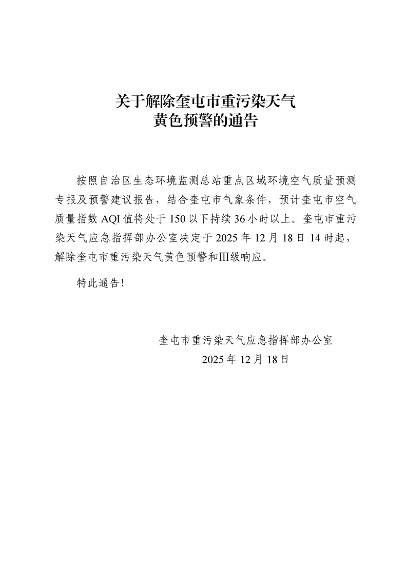 发布日期:2025-12-18 来源:奎屯市重污染天气应急指挥部办公室