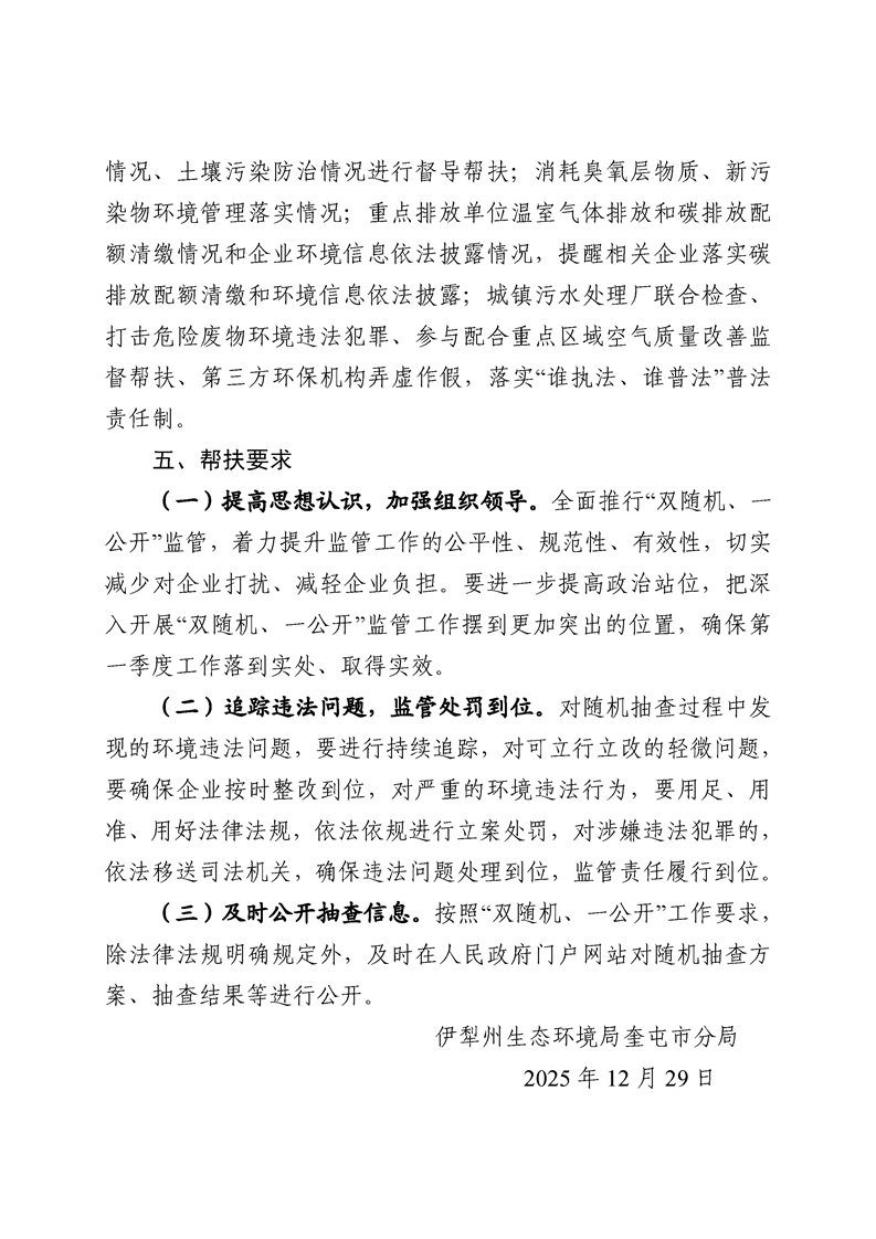 2026年第一季度伊犁州生态环境局奎屯市分局生态环境执法“双随机、一公开”监管工作方案