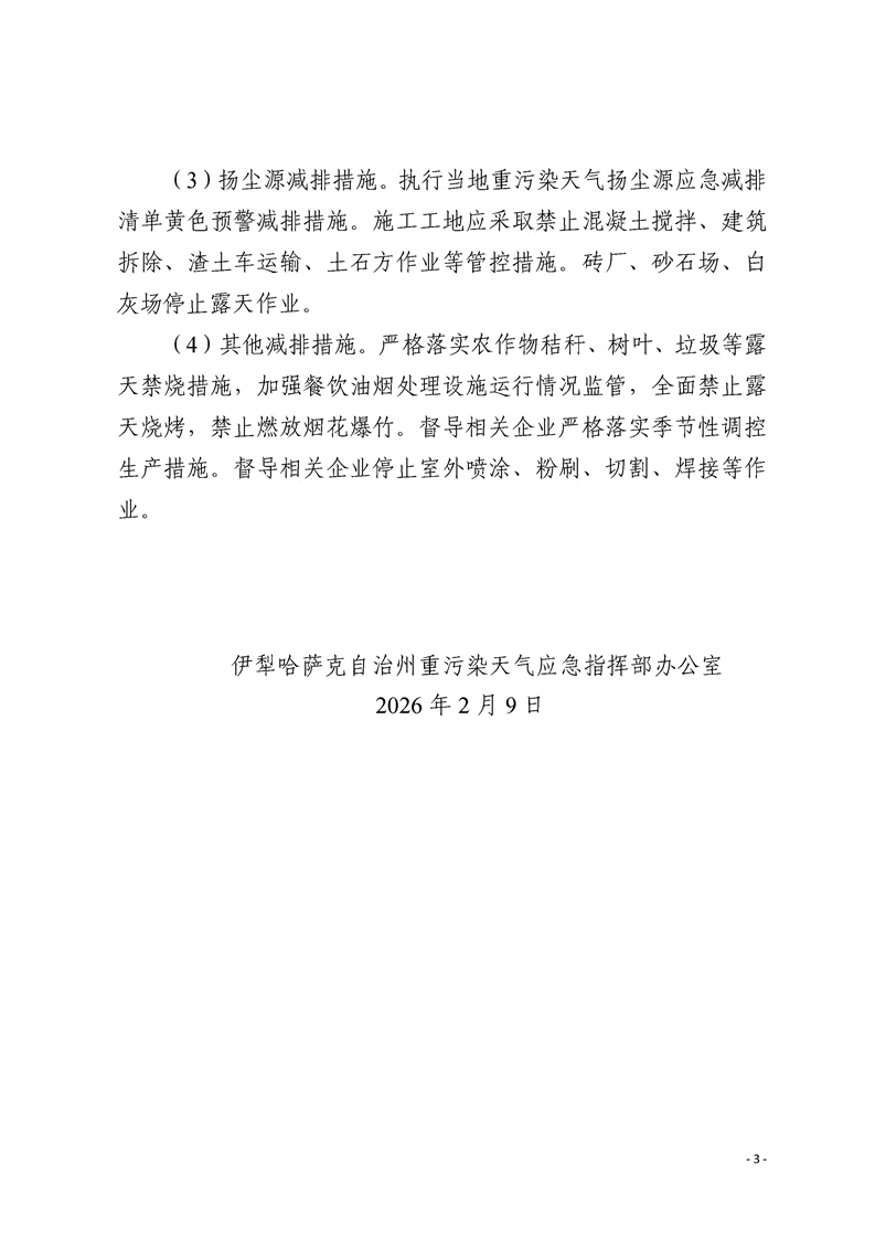 发布日期:2026-02-09 来源:伊犁哈萨克自治州重污染天气应急指挥部办公室