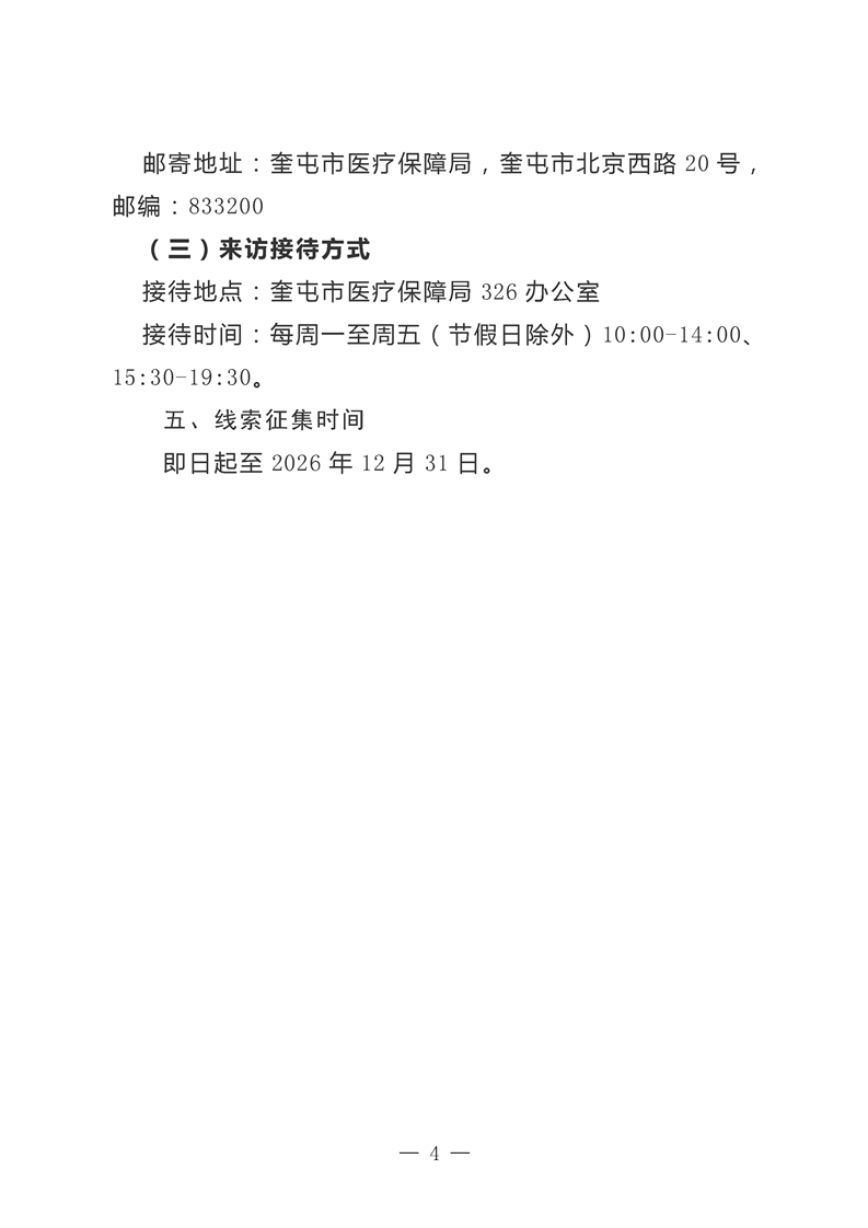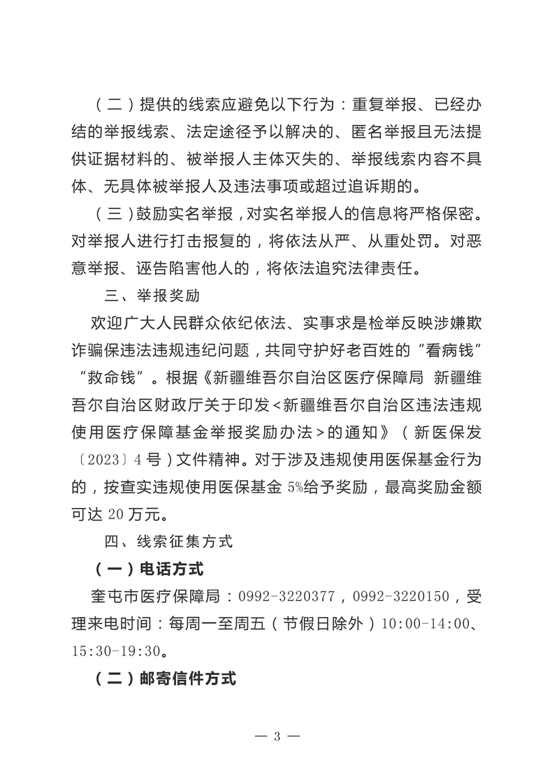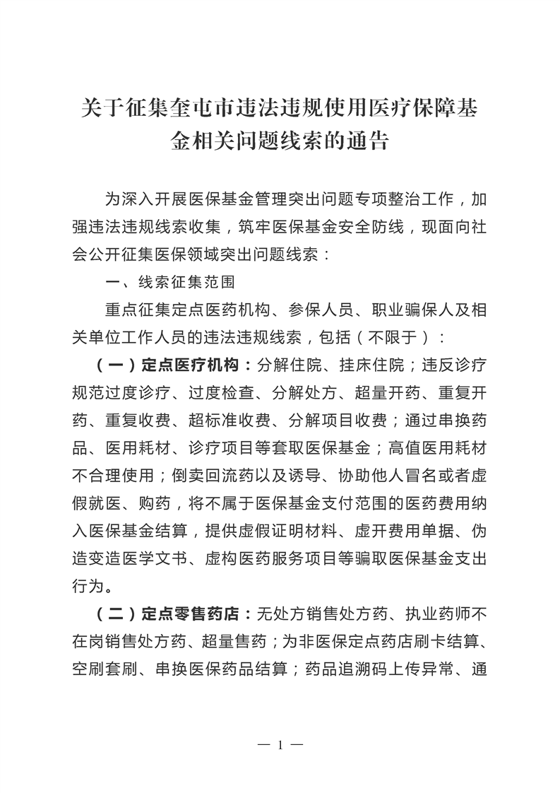 关于征集奎屯市违法违规使用医疗保障基金相关问题线索的通告