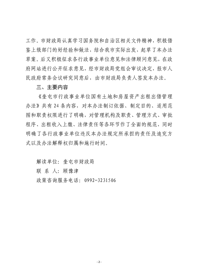 关于制定《奎屯市行政事业单位国有土地和房屋资产出租出借管理办法》的政策解读
