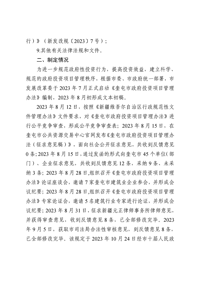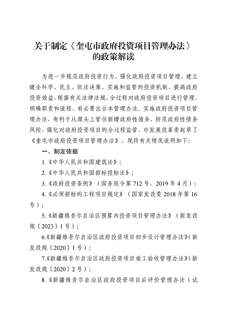 关于制定《奎屯市政府投资项目管理办法》的政策解读