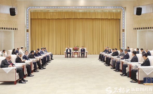 9月18日,自治区党委书记陈小江在乌鲁木齐会见巴基斯坦总统扎尔达里。石榴云/新疆日报记者崔志坚摄