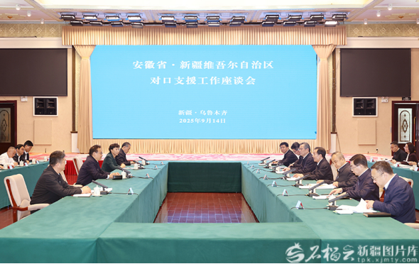 9月14日,安徽省·新疆维吾尔自治区对口支援工作座谈会在乌鲁木齐召开。石榴云/新疆日报记者崔志坚摄