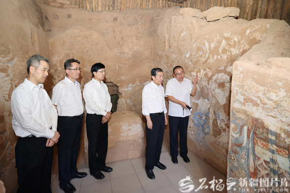 9月1日,自治区党委书记陈小江在鄯善县吐峪沟乡吐峪沟村,实地察看石窟考古、历史文化遗产保护利用等工作开展情况。石榴云/新疆日报记者崔志坚摄