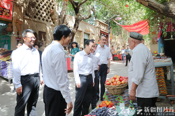9月1日,自治区党委书记陈小江在吐鲁番市葡萄沟,了解当地文旅深度融合发展情况。石榴云/新疆日报记者崔志坚摄