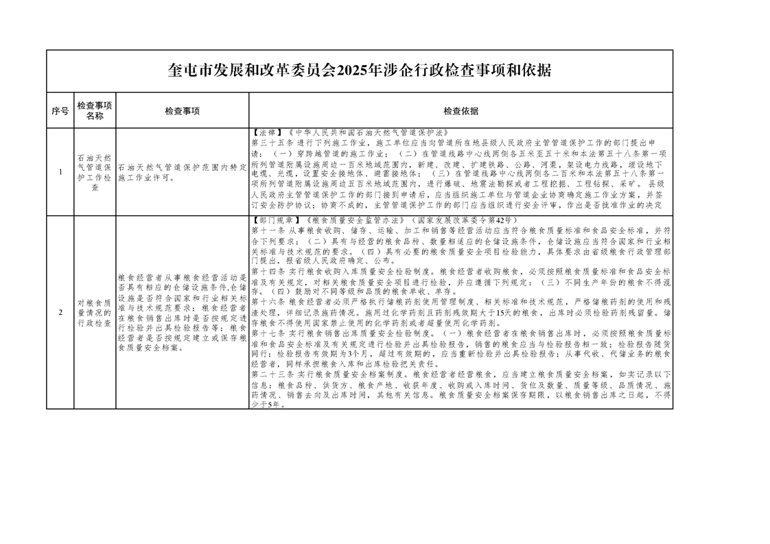 奎屯市发展和改革委员会涉企行政检查事项和依据