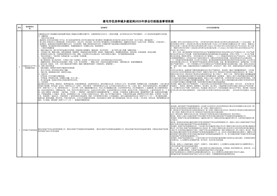 奎屯市住房和城乡建设局涉企行政检查事项依据