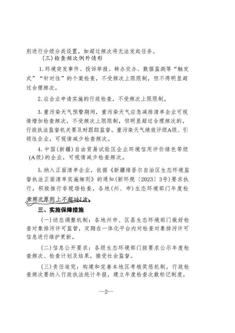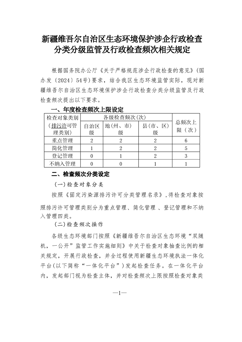 新疆维吾尔自治区生态环境保护涉企行政检查分类分级监管及行政检查频次相关规定