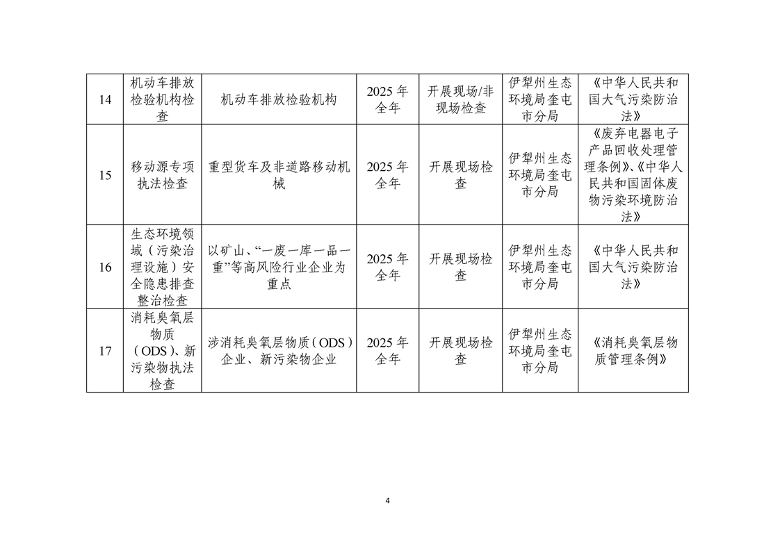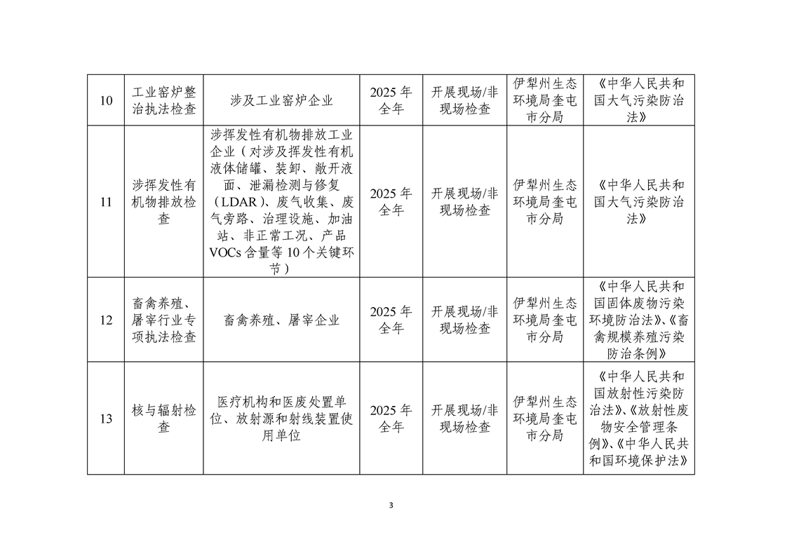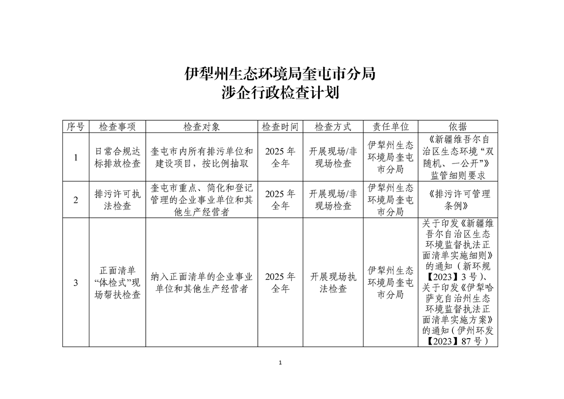 伊犁州生态环境局奎屯市分局涉企行政检查标准