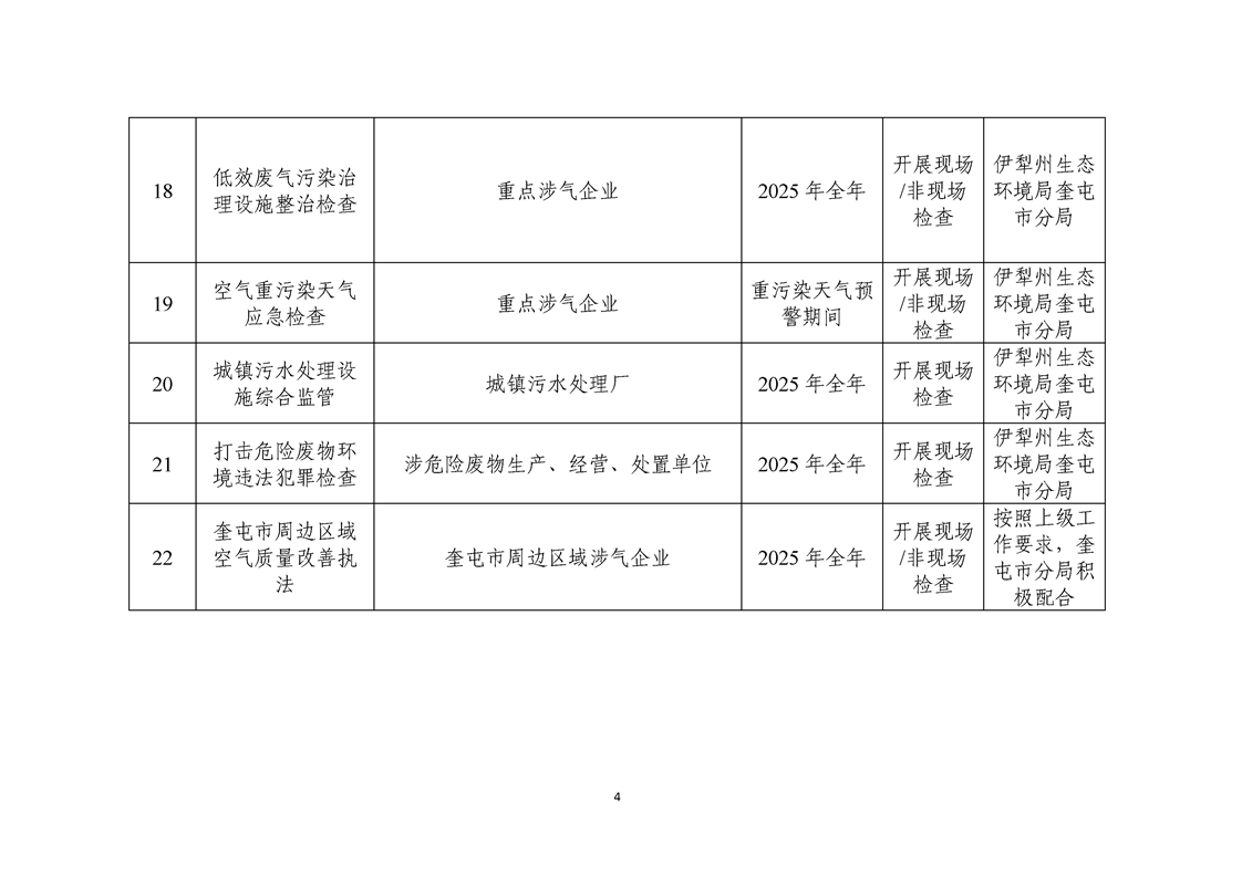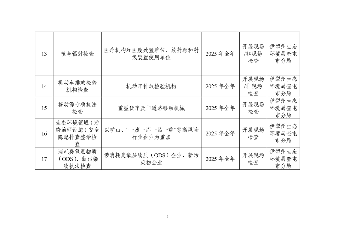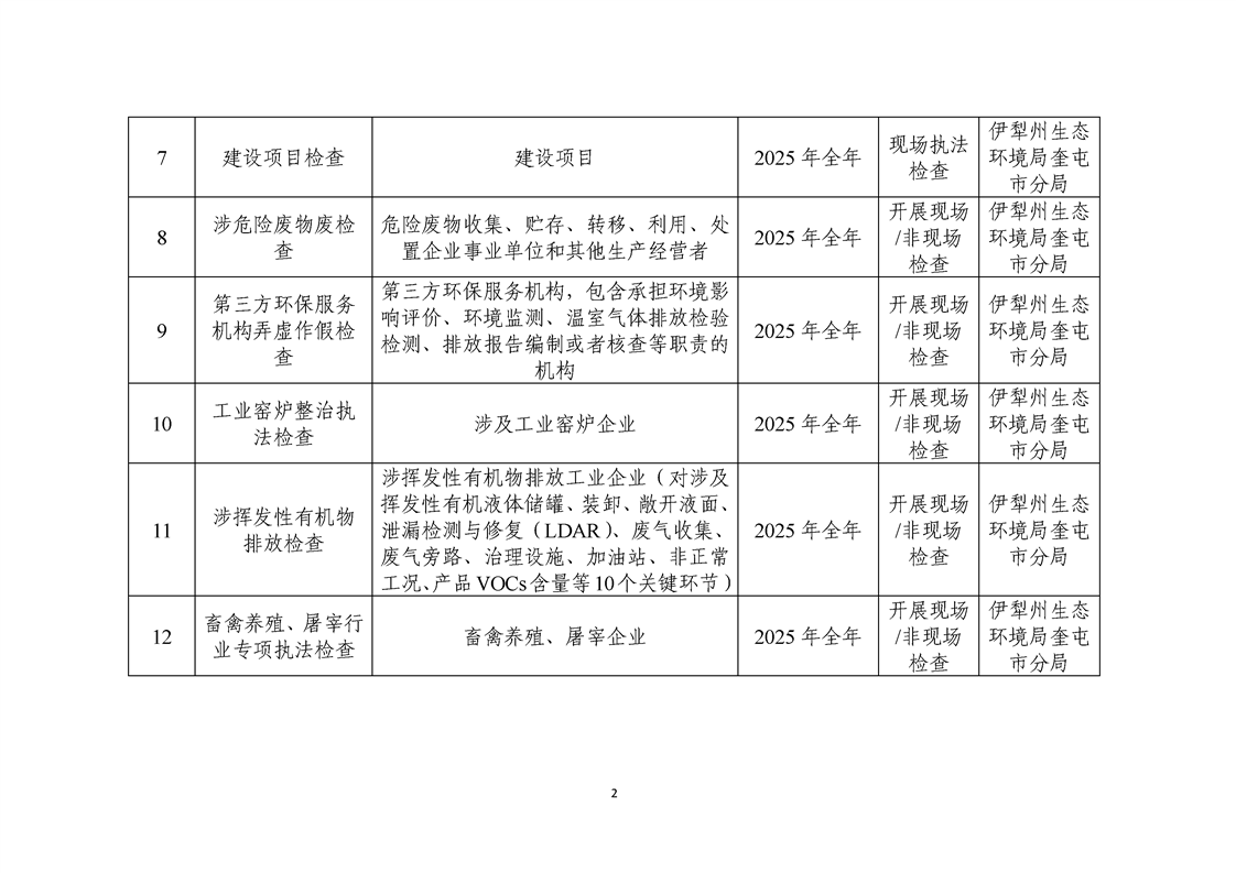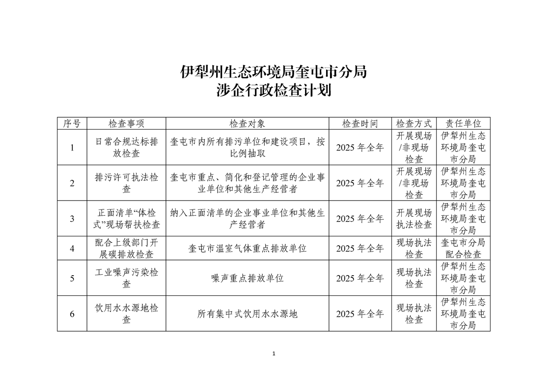 伊犁州生态环境局奎屯市分局涉企行政检查计划