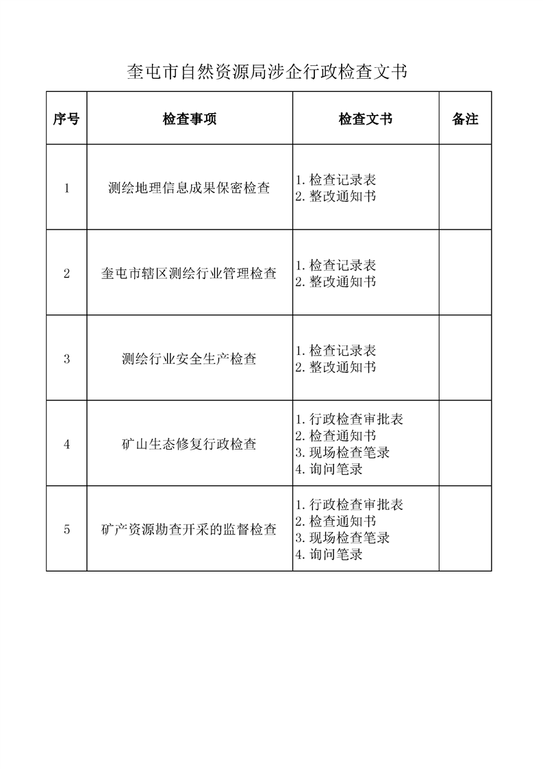 奎屯市自然资源局涉企行政检查文书