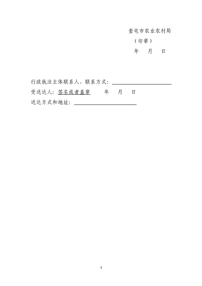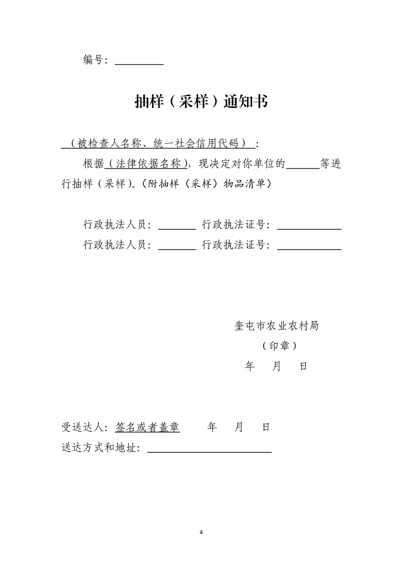 奎屯市农业农村局涉企行政检查文书