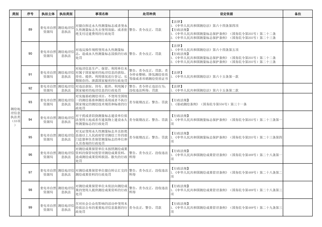 奎屯市自然资源局行政执法事项清单
