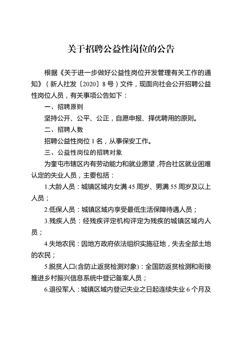 关于招聘公益性岗位的公告