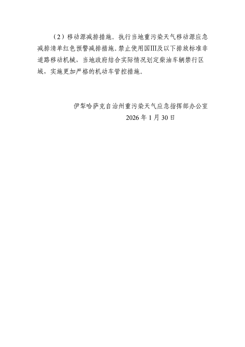 发布日期:2026-01-30 来源:伊犁哈萨克自治州重污染天气应急指挥部办公室